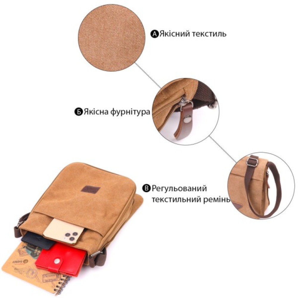 Практична сумка для чоловіків невеликого розміру, з розширювачем на блискавці, із міцного текстилю. Аксесуар має одне основне відділення, три внутрішні кишені різних розмірів, одна з яких на блискавці і три зовнішні кишені, дві з яких на блискавці. Сумка має розширювач на блискавці, щоб більше ваших речей помістилося, а наявність кишень допоможе вам ідеально їх розкласти. Сумка чудово поєднується зі стилем кежуал, а також мілітарі. Модель дуже практична та універсальна. Виріб стане чудовим подарунком для будь-якого чоловіка.