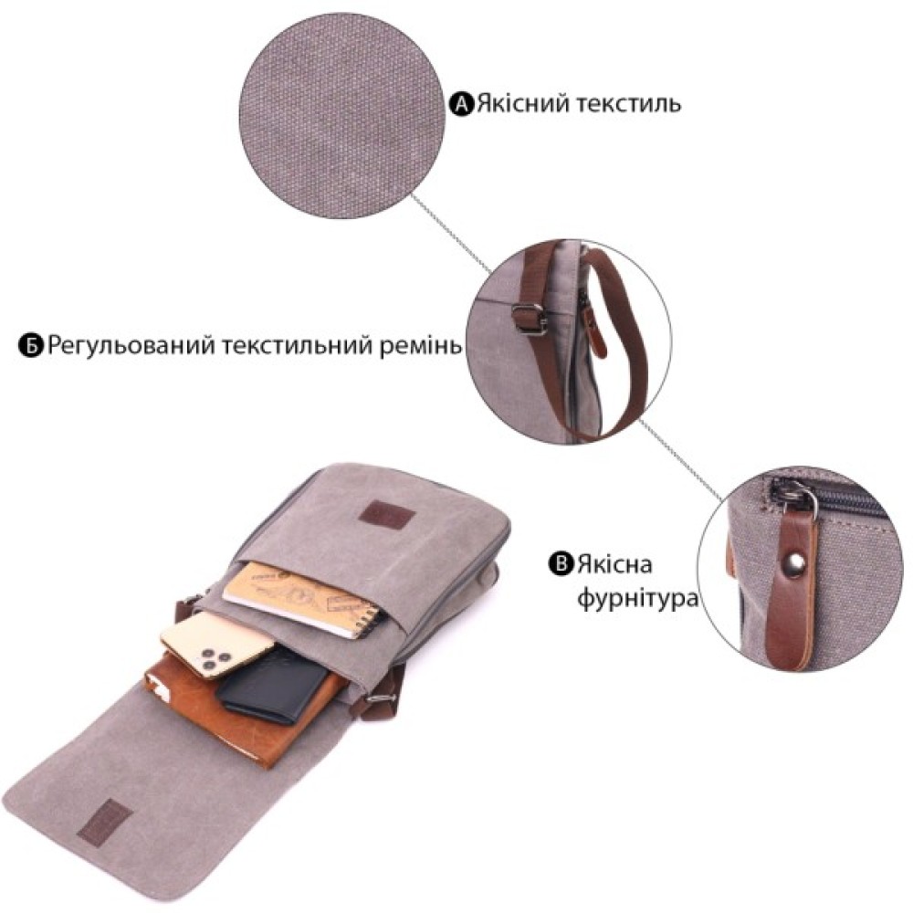 Сумка Vintage Чоловіча з текстилю Сіра (21266)