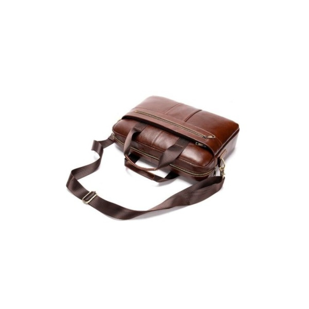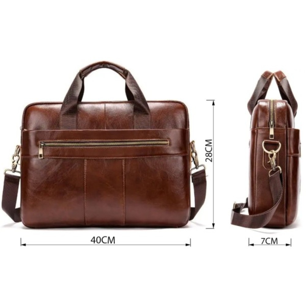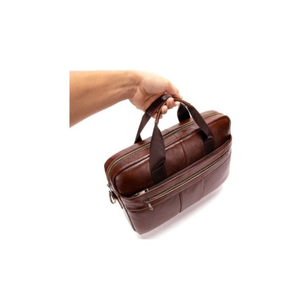 Ділова чоловіча сумка з натуральної шкіри у класичному дизайні. Аксесуар можна носити як в руках, так і на плечі завдяки знімному текстильному ремінцю.