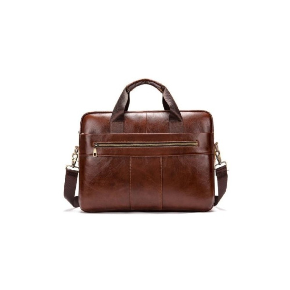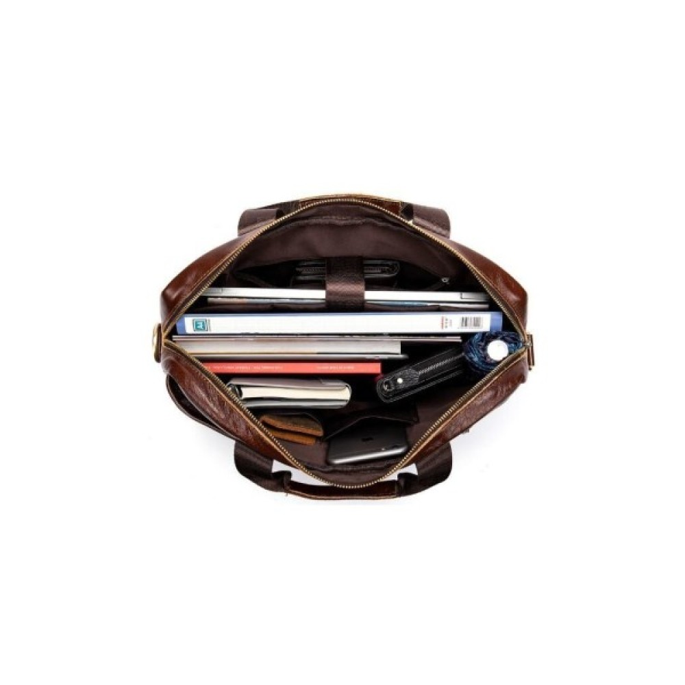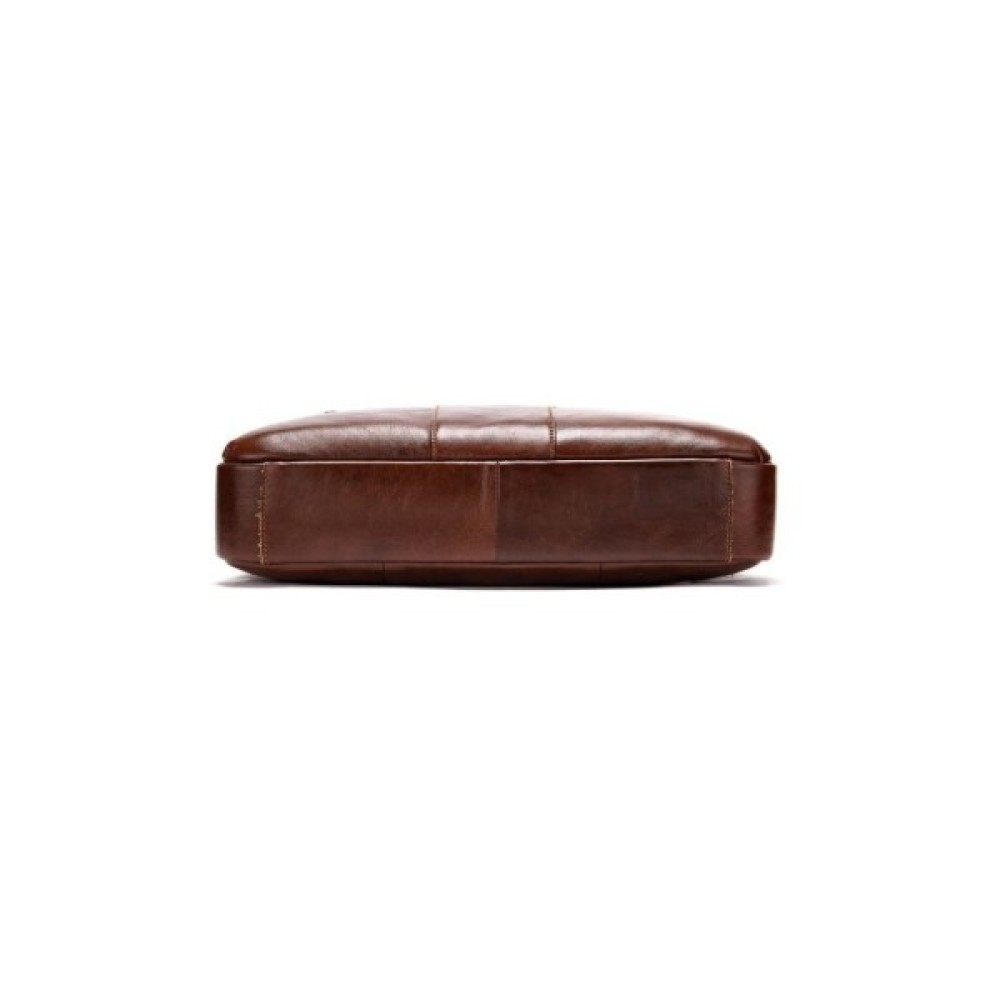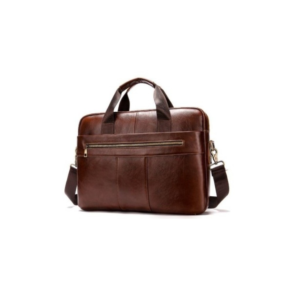 Ділова чоловіча сумка з натуральної шкіри у класичному дизайні. Аксесуар можна носити як в руках, так і на плечі завдяки знімному текстильному ремінцю.