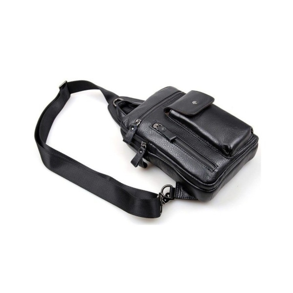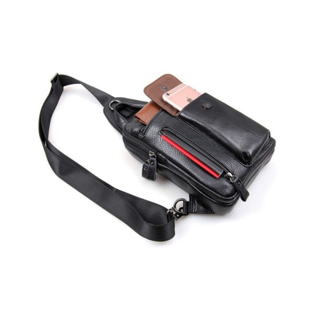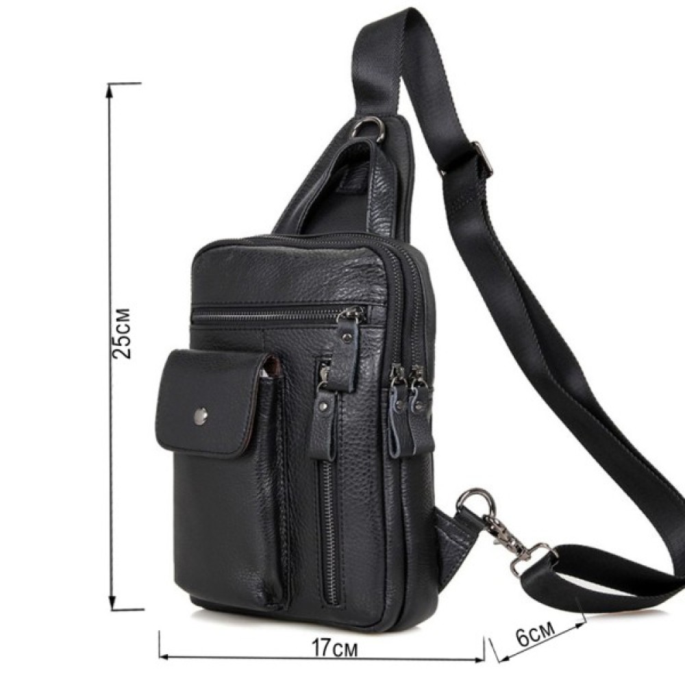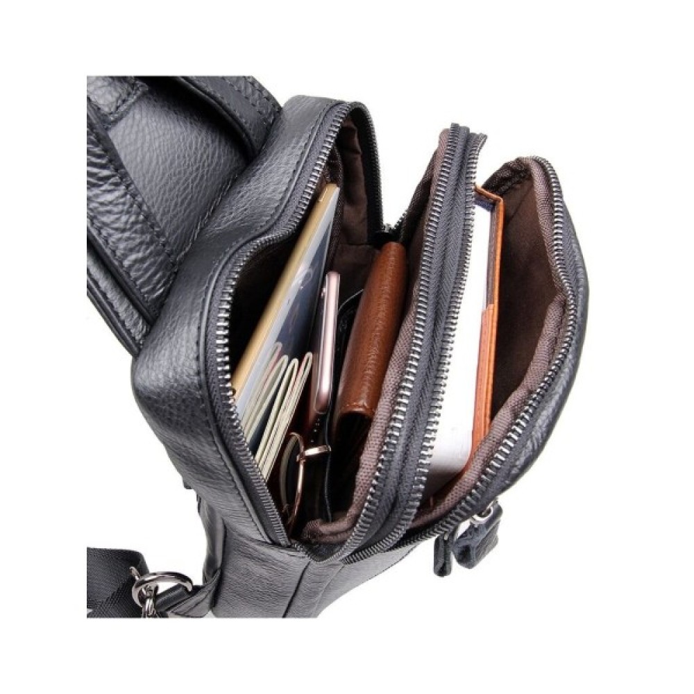 Багатофункціональна сумка, яка може використовуватися як чоловіками, так і жінками. Аксесуар виконаний з натуральної високоякісної шкіри, приємної на дотик. Колір фурнітури: темне срібло. На лицьовій стороні знаходиться відразу 3 кишені: 2 на блискавках і 1 на магнітній кнопці. На задній зовнішній стороні знаходиться відділення на блискавці.