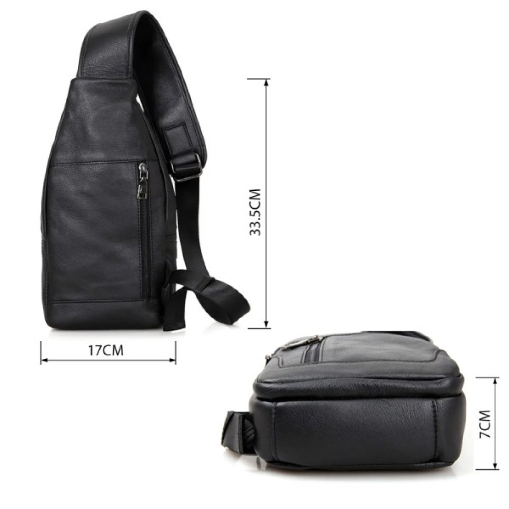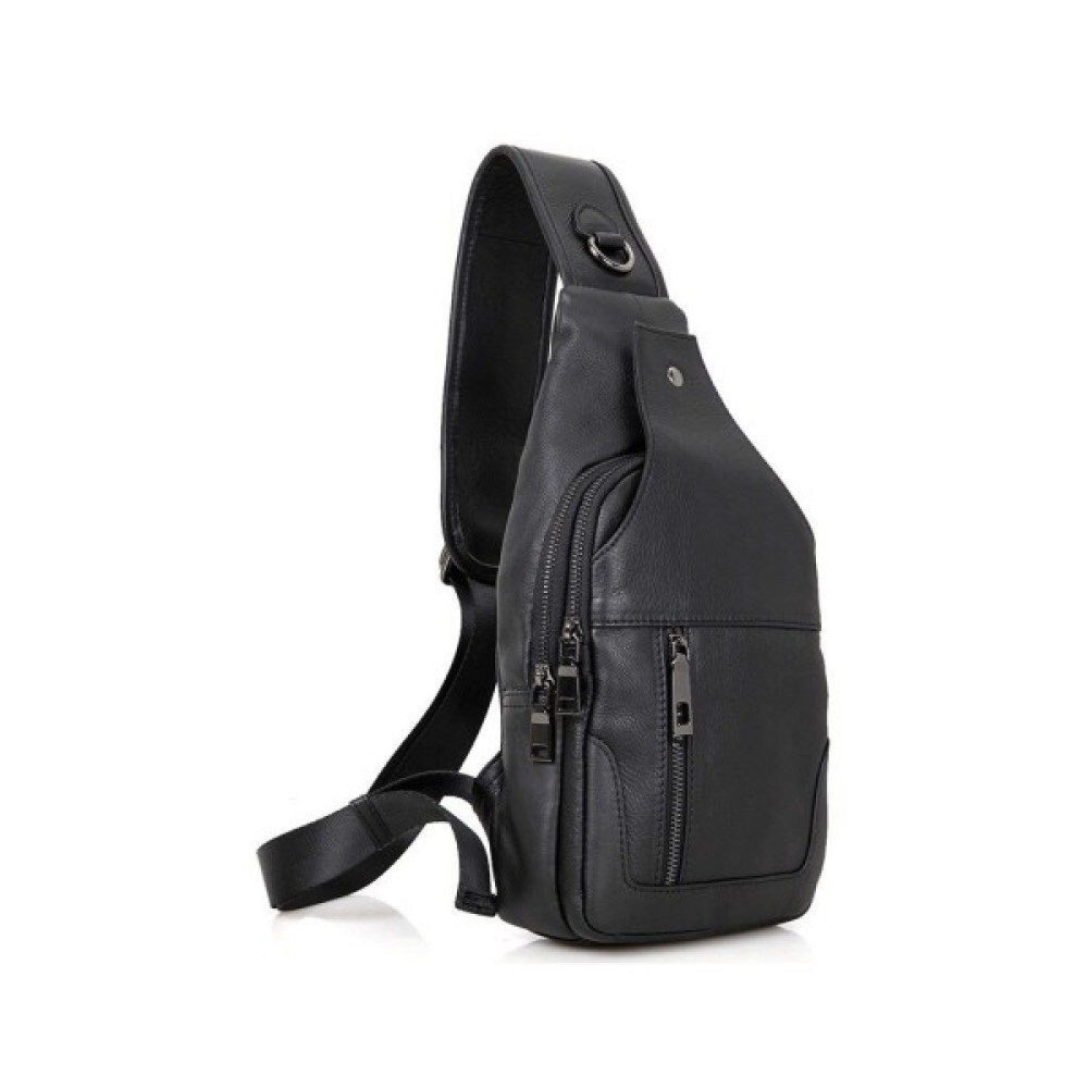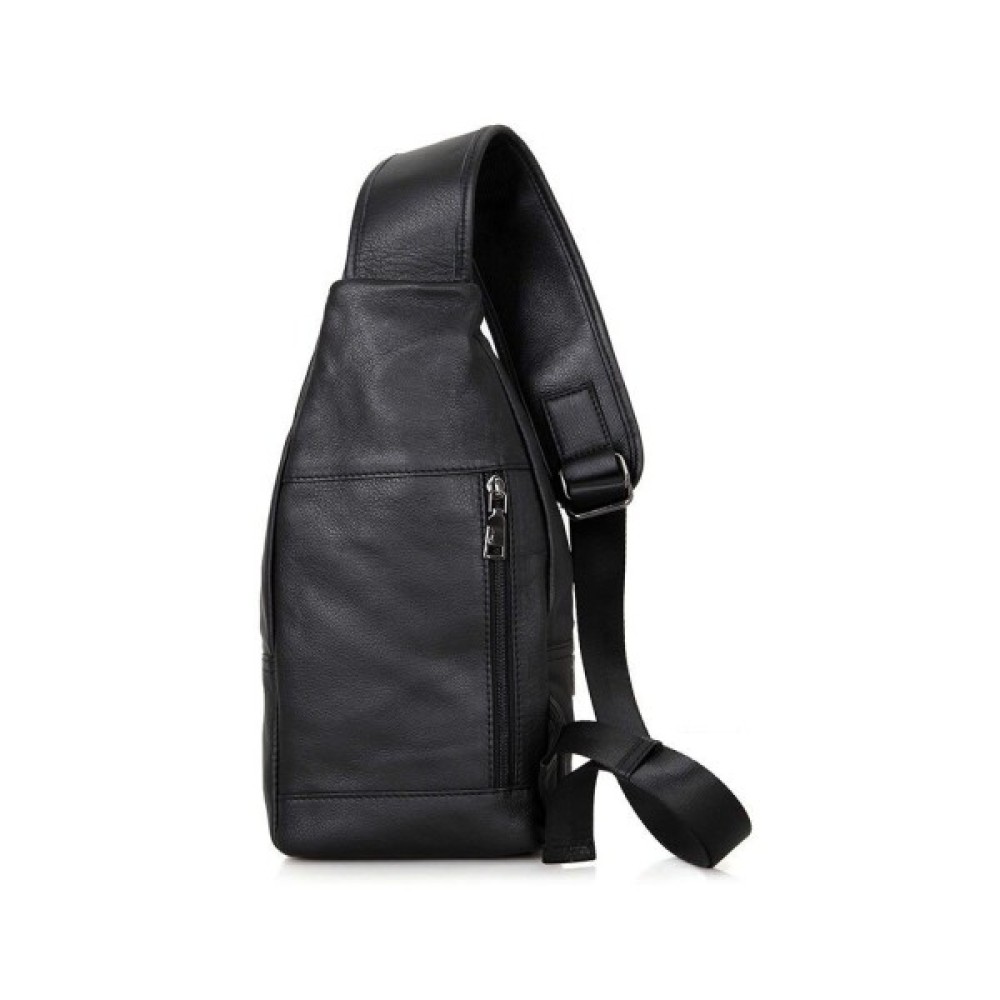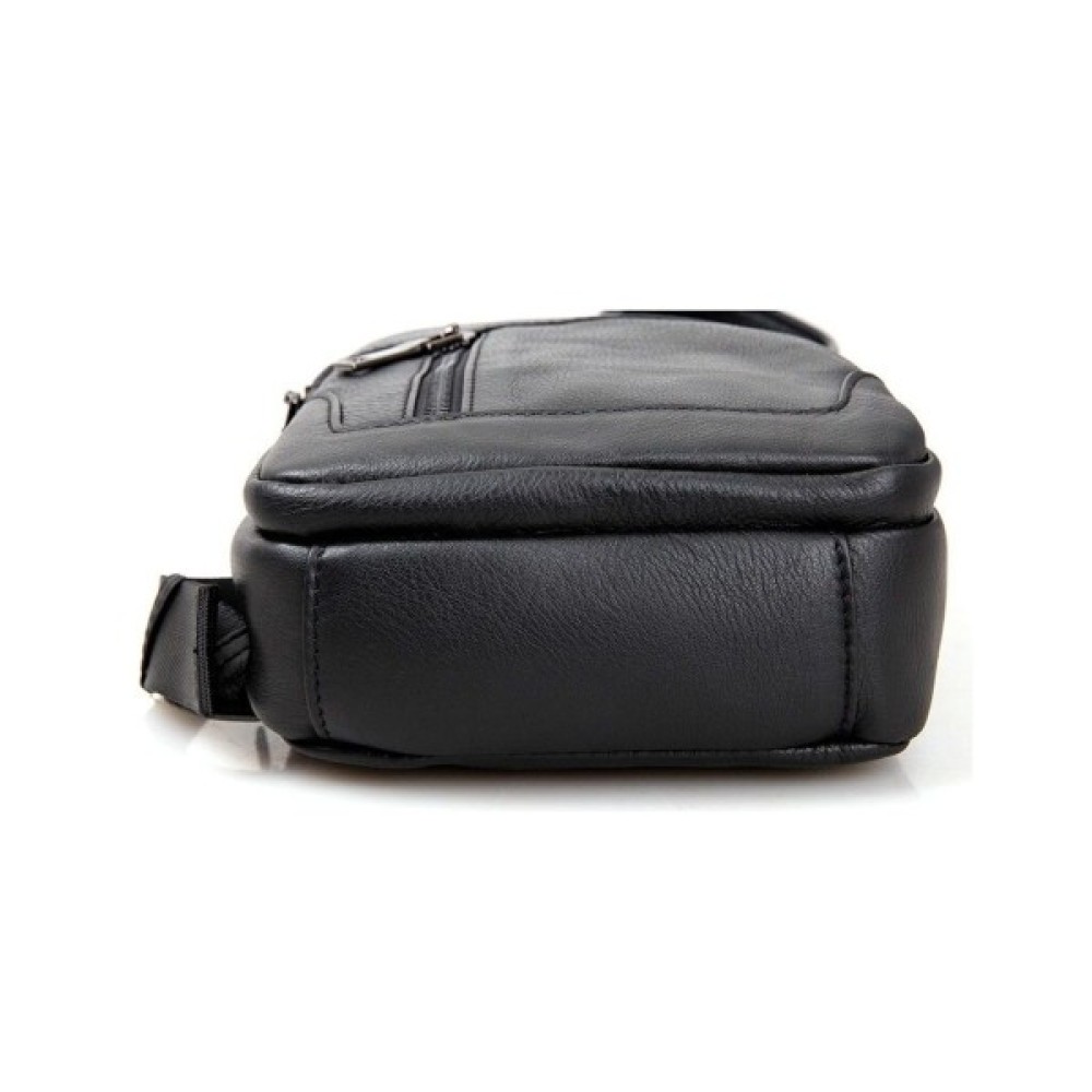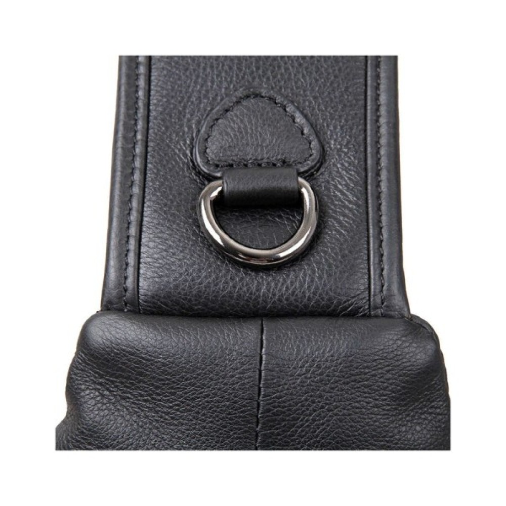 Зручна шкіряна сумка чорного кольору, яку можна носити як чоловікам, так і жінкам.