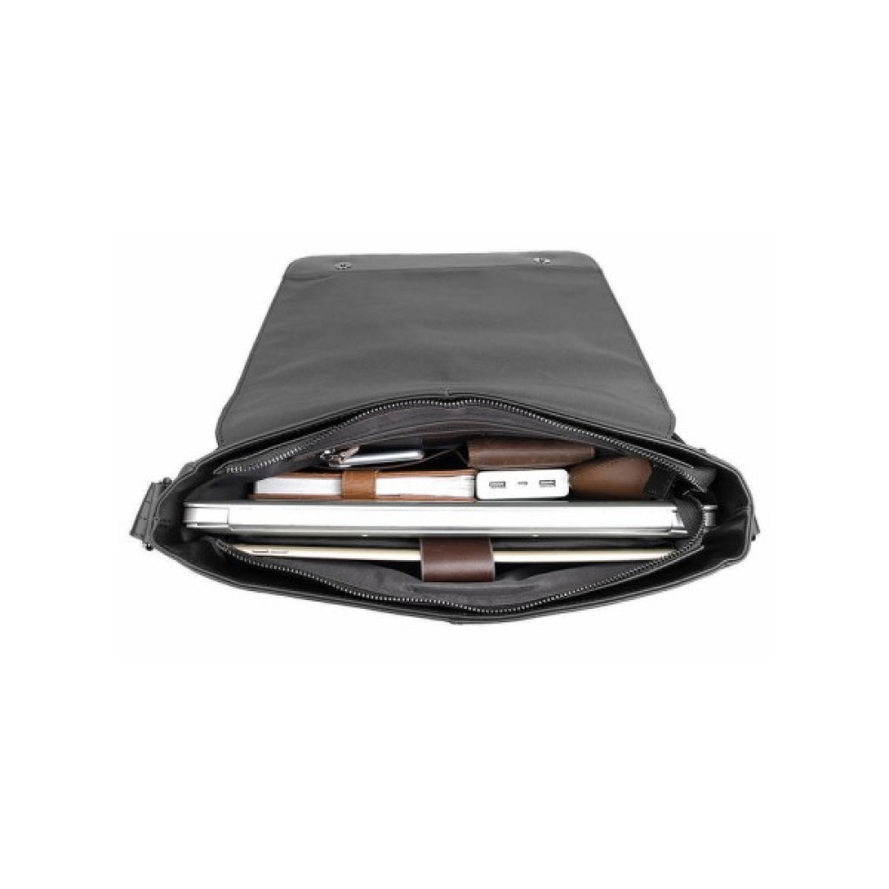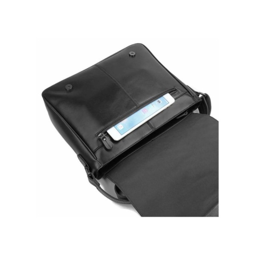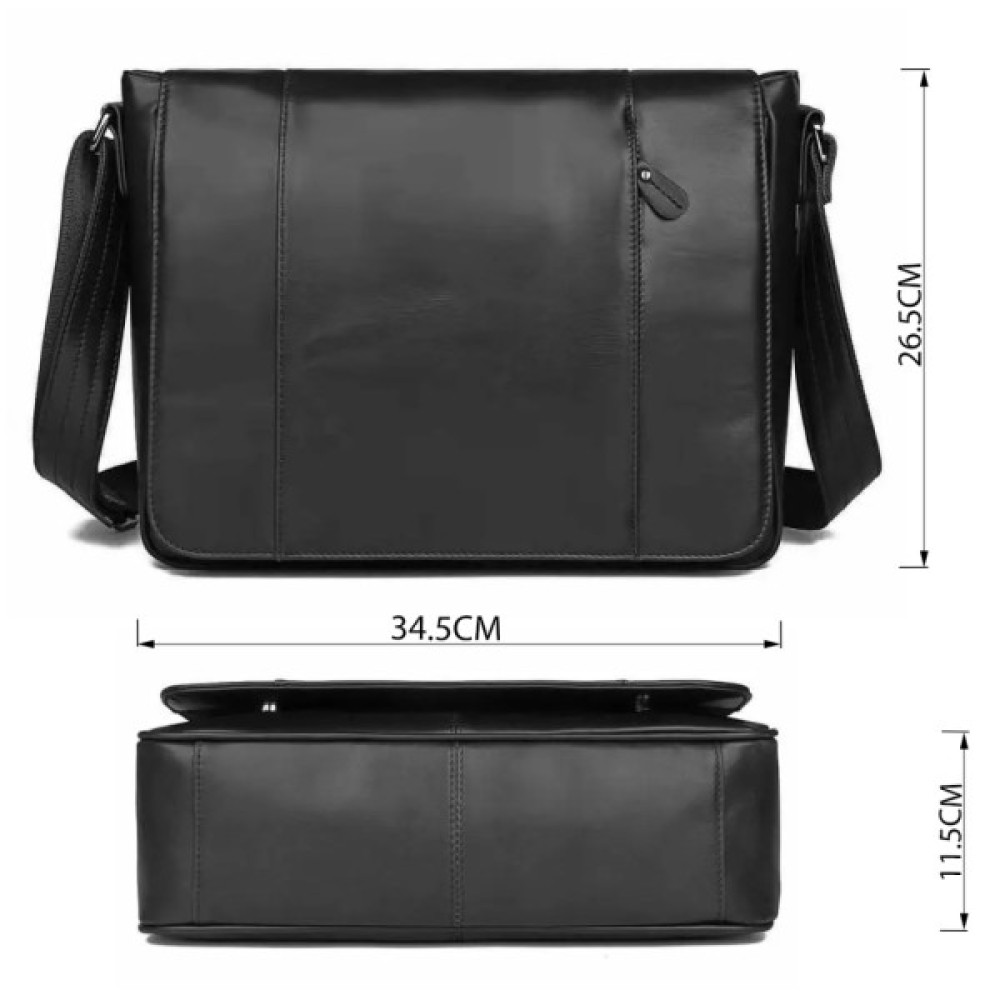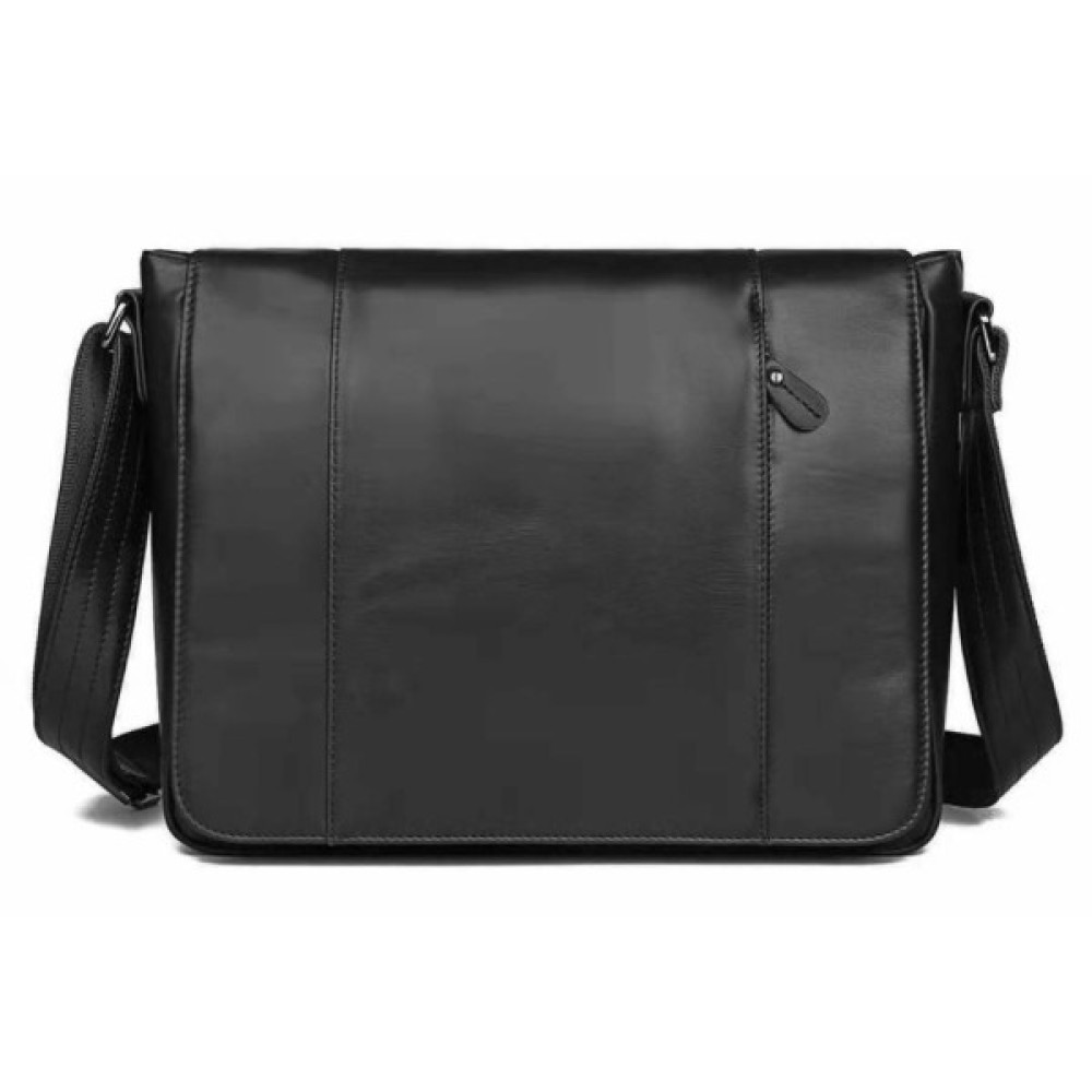 Отличная мужская сумка черного цвета. Аксессуар выполнен из качественной натуральной кожи с легким, едва заметным блеском. Цвет фурнитуры: темное серебро.