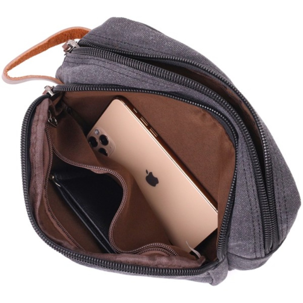 Компактна текстильна барсетка небільшого розміру. Аксесуар має два основні відділення, внутрішню кишеню на блискавці та зовнішню кишеню на блискавці.
