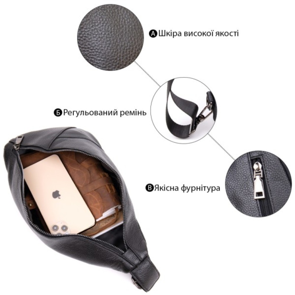 Сумка з натуральної шкіри, приємної на дотик. Модель має дуже зручний функціонал і стильний вигляд. Сумка прошита по краях рівним рядком, що додає їй витонченості та елегантності. Вона доповнена якісною фурнітурою та текстильним ремінцем, який можна носити на будь-якому зручному плечі. Така сумка стане незамінною на кожен день та буде чудовим вибором для подорожей, адже в неї можна покласти все необхідне. Виріб упаковано в тканинний чохол.