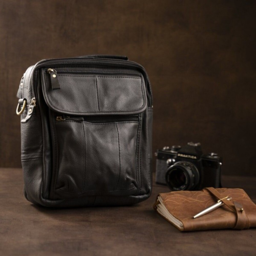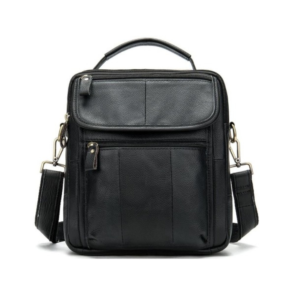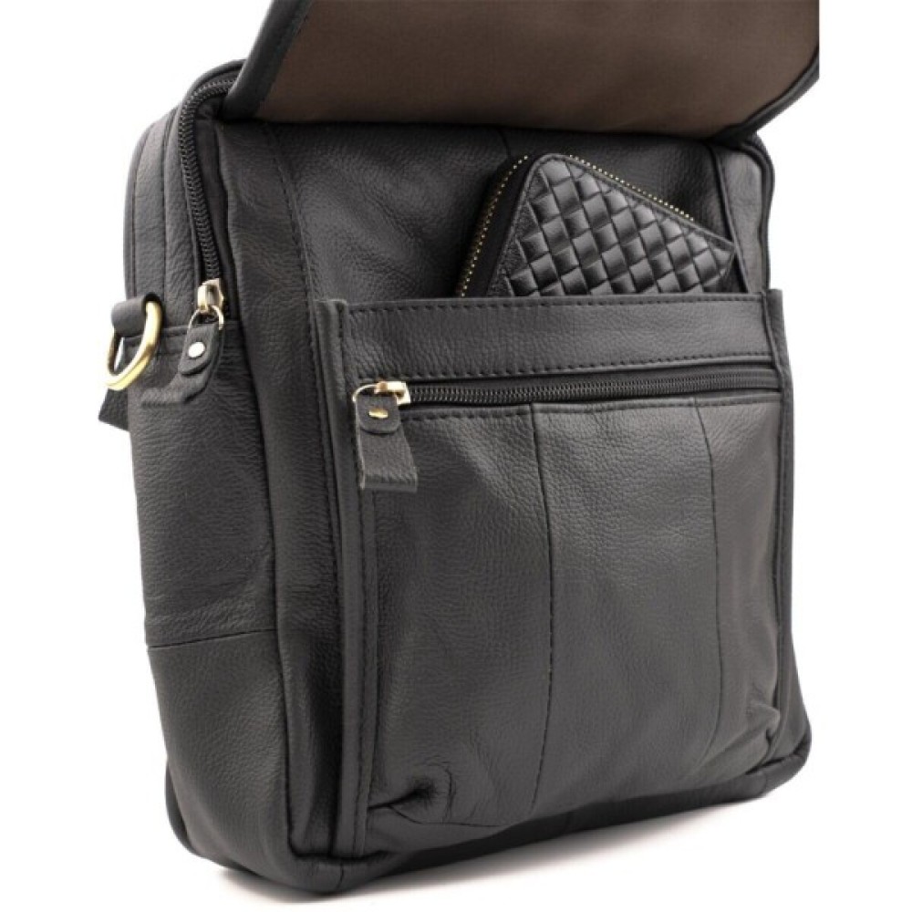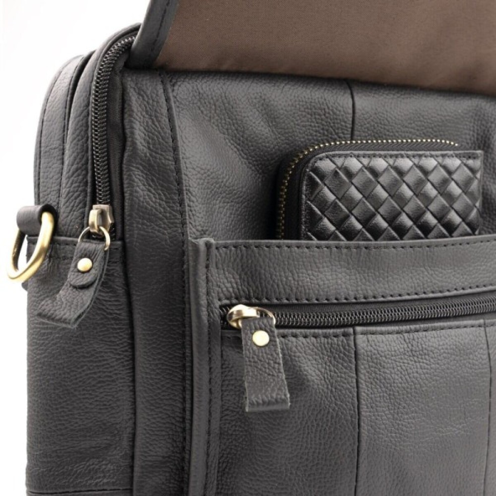 Солідна чоловіча сумка з натуральної шкіри високої якості. Усередині аксесуара коричнева текстильна підкладка. Модель з широким функціоналом. Сумка не вибаглива в догляді і довго носиться. Буде хорошим подарунком для близької людини. Сумка прошита по краях чорною ниткою. Аксесуар можна носити як в руках, так і на плечі.