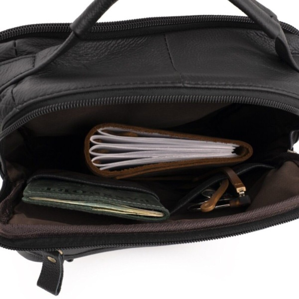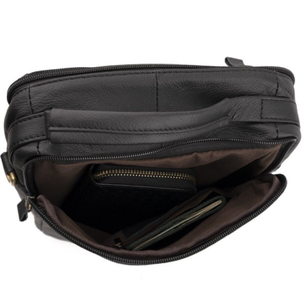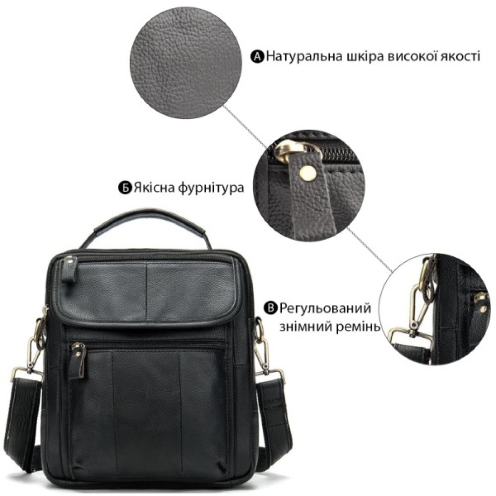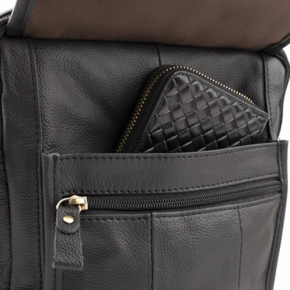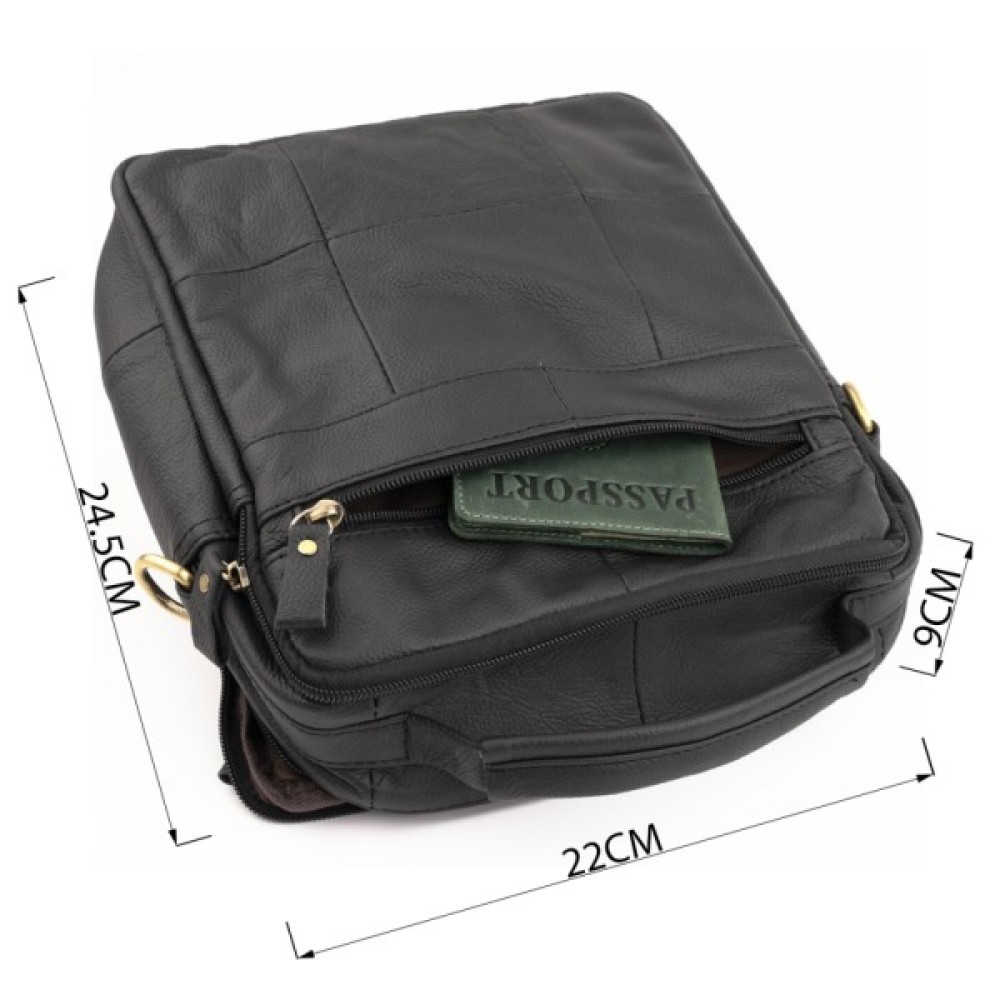 Солідна чоловіча сумка з натуральної шкіри високої якості. Усередині аксесуара коричнева текстильна підкладка. Модель з широким функціоналом. Сумка не вибаглива в догляді і довго носиться. Буде хорошим подарунком для близької людини. Сумка прошита по краях чорною ниткою. Аксесуар можна носити як в руках, так і на плечі.