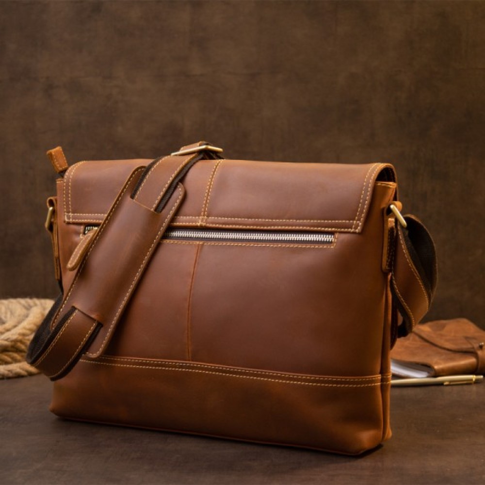 Масивна вінтажна почтальонка в популярному типі шкіри. Виріб має відмінний сучасний дизайн. Доповнена сумка ідеально підібраним функціоналом. Усередині якісна підкладка. Сумка виконана в грубій шкірі, яка тримає форму і виглядає дуже дорого. Такая сумка must have для ділової людини. У сумці ви зможете носити нетбук або планшет, ділові папери. Сумка буде відмінним варіантом для подарунка кожному чоловіку.