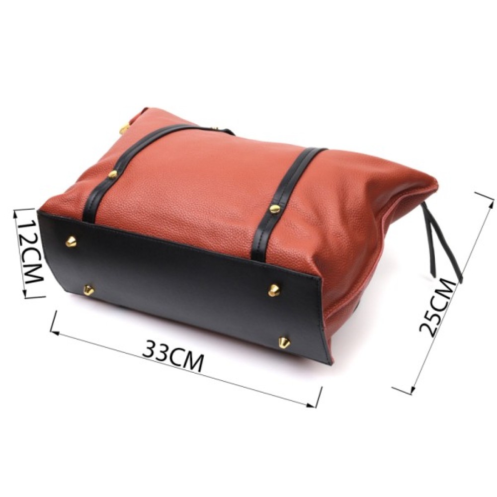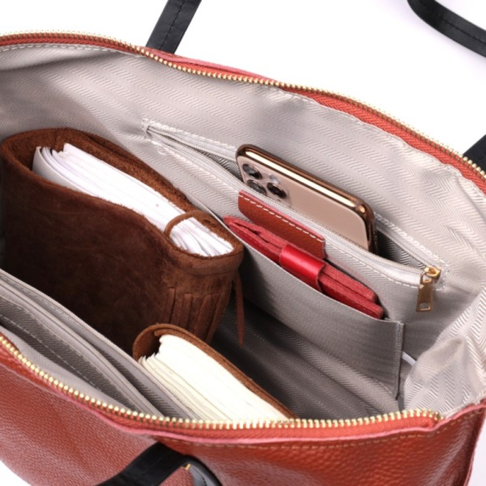 Носити сумку можна на плечі та в руках — для цього є подовжені шкіряні ручки.