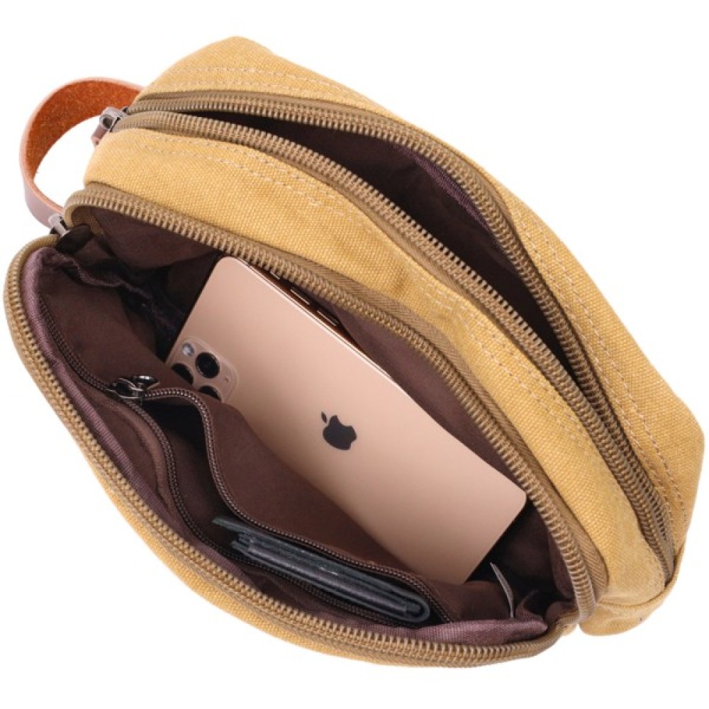 Сумка Vintage На два відділення з текстилю Пісочна (22232)