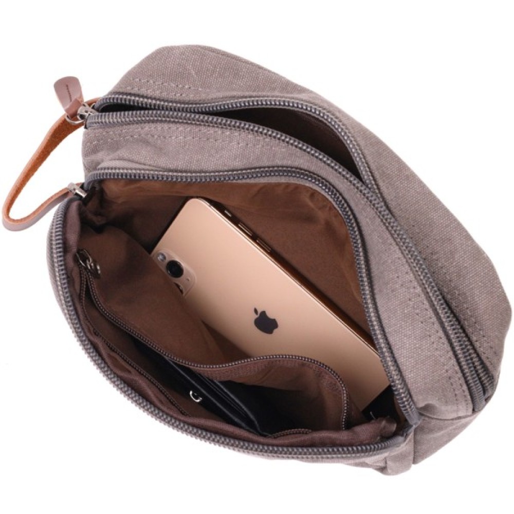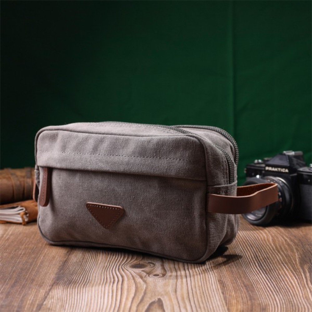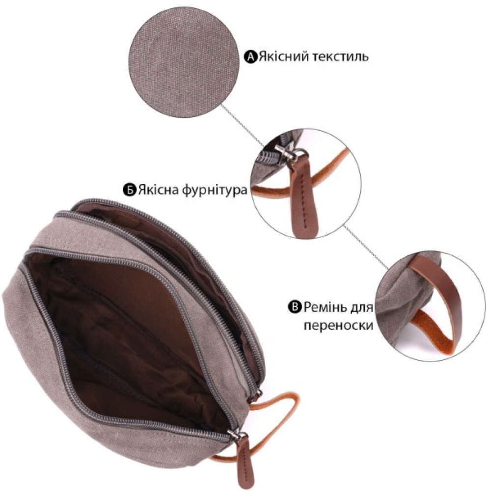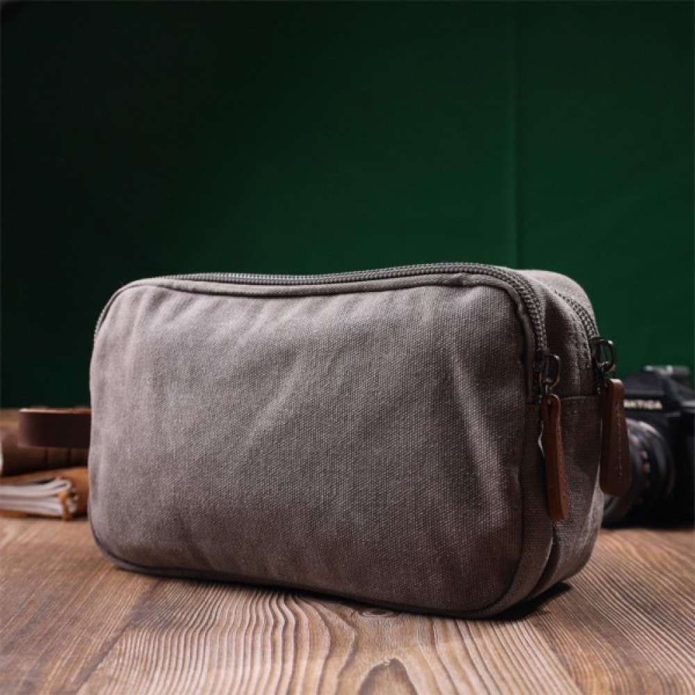 Практична текстильна барсетка невеликого розміру. Аксесуар має два основні відділення, внутрішню кишеню на блискавці та зовнішню кишеню на блискавці.