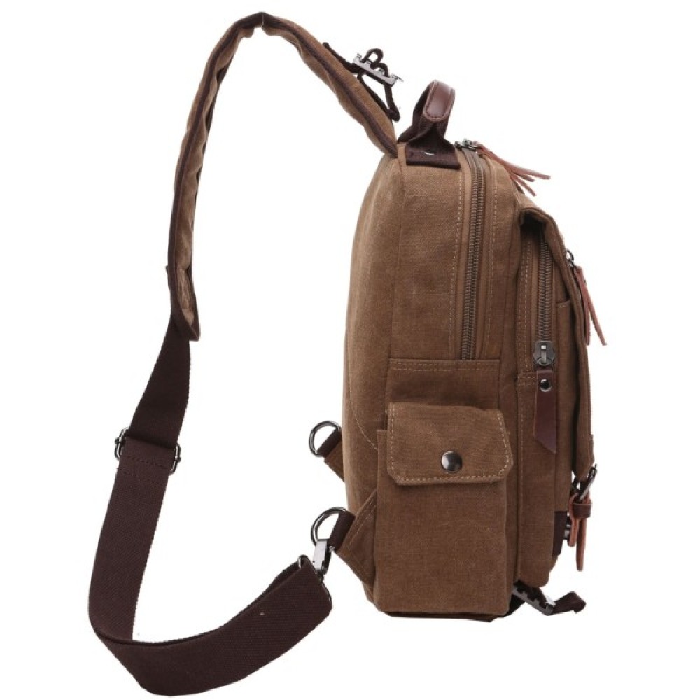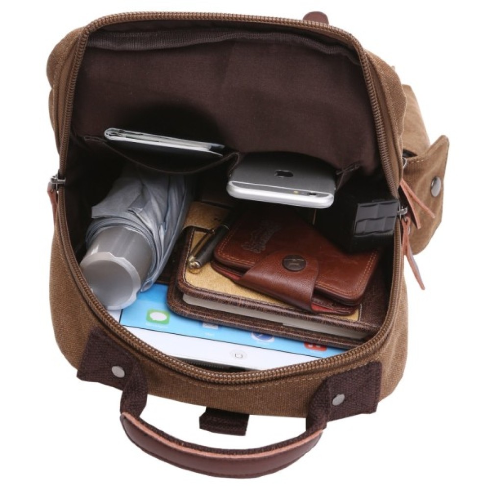 Практична сумка-рюкзак із щільного текстилю має зручний функціонал з великою кількістю кишень.