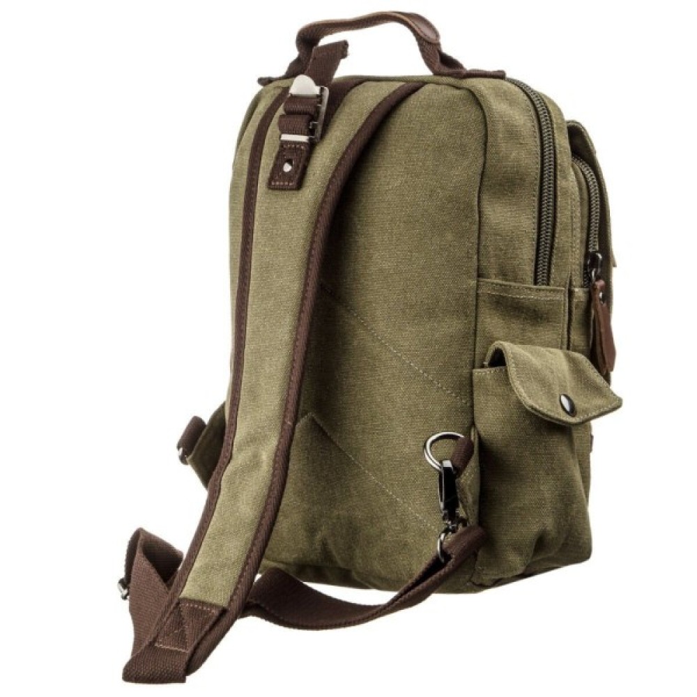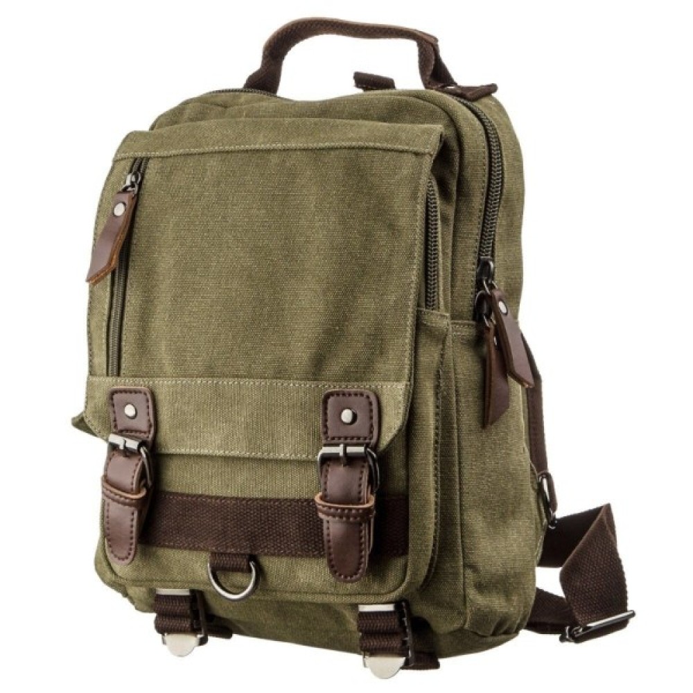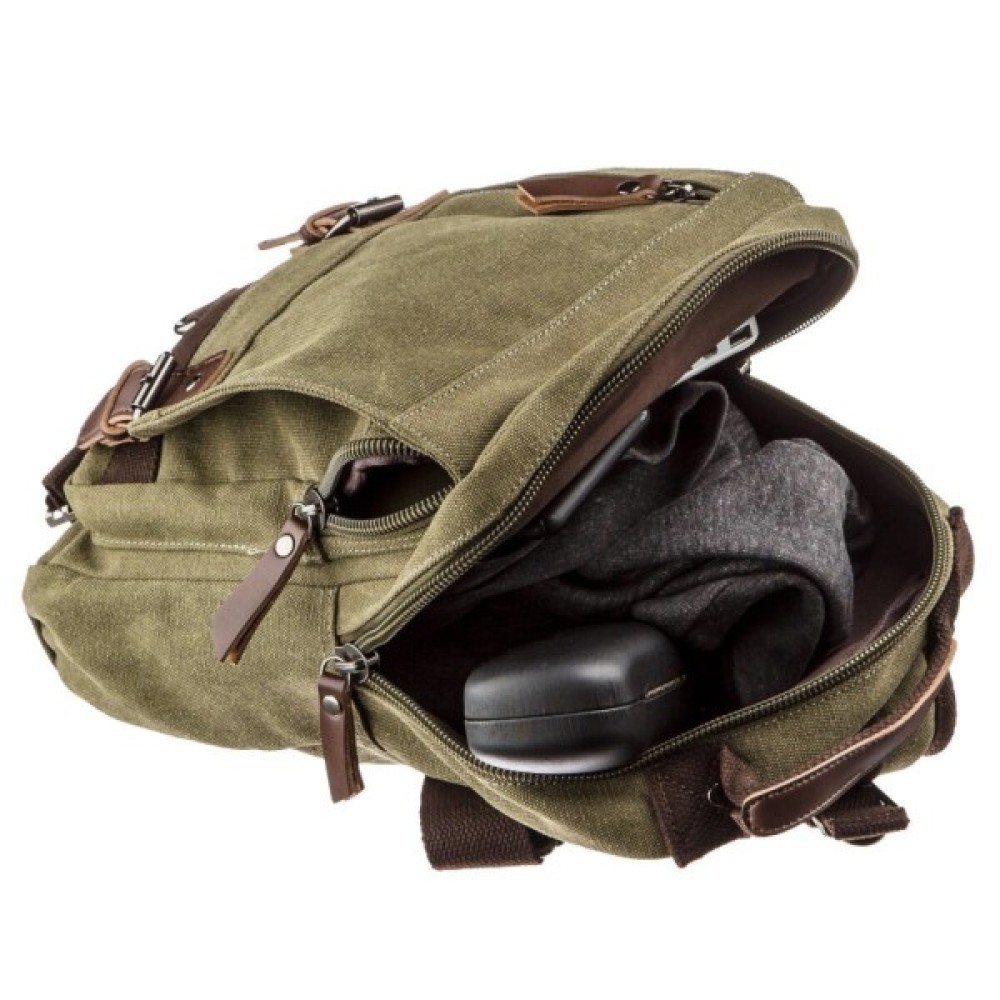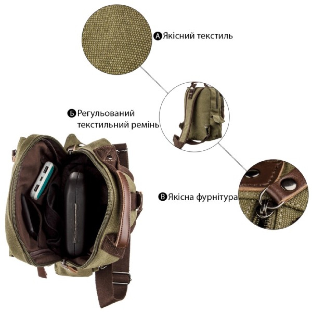 Практична сумка-рюкзак із щільного текстилю має зручний функціонал з великою кількістю кишень.