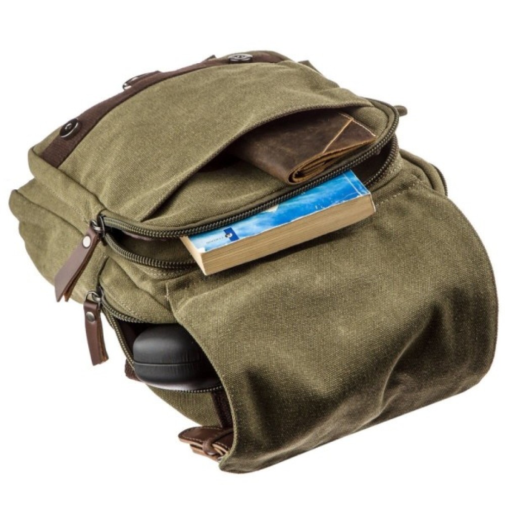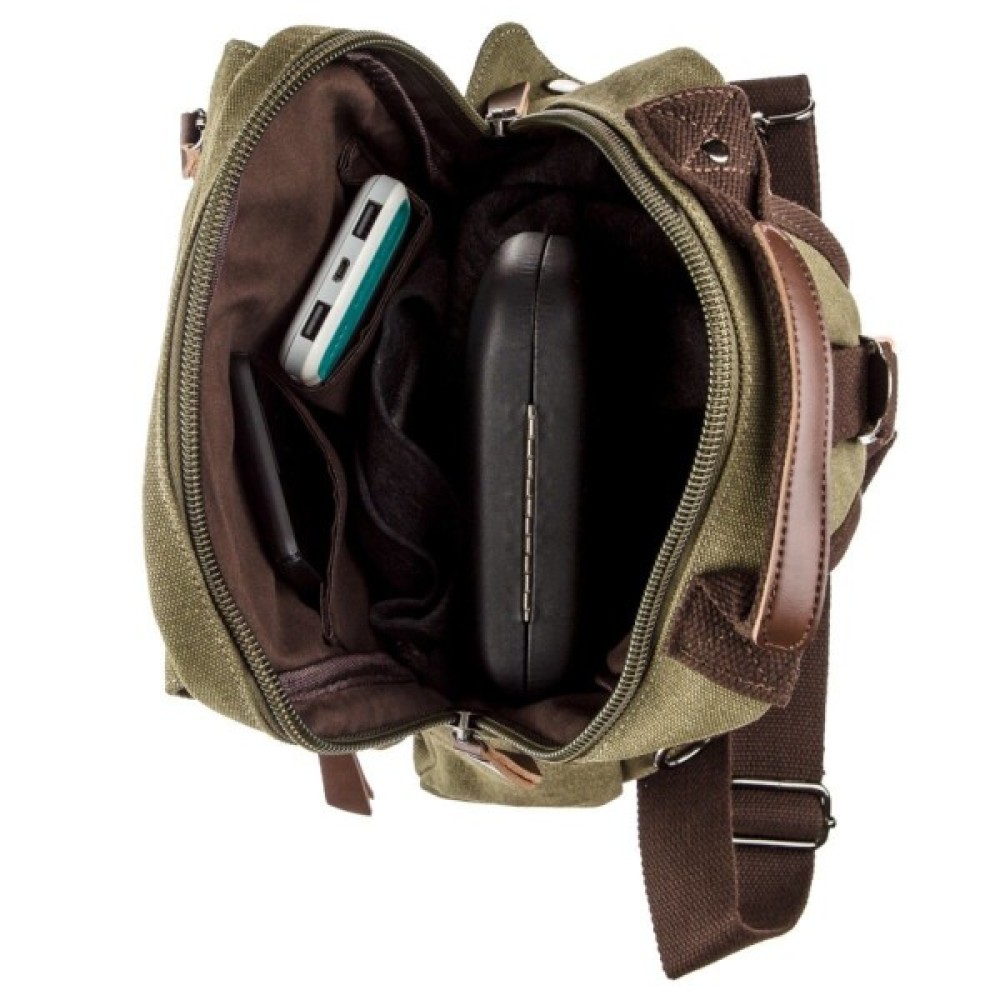 Додаткове відділення на блискавці під клапаном і відкрита накладна кишеня.