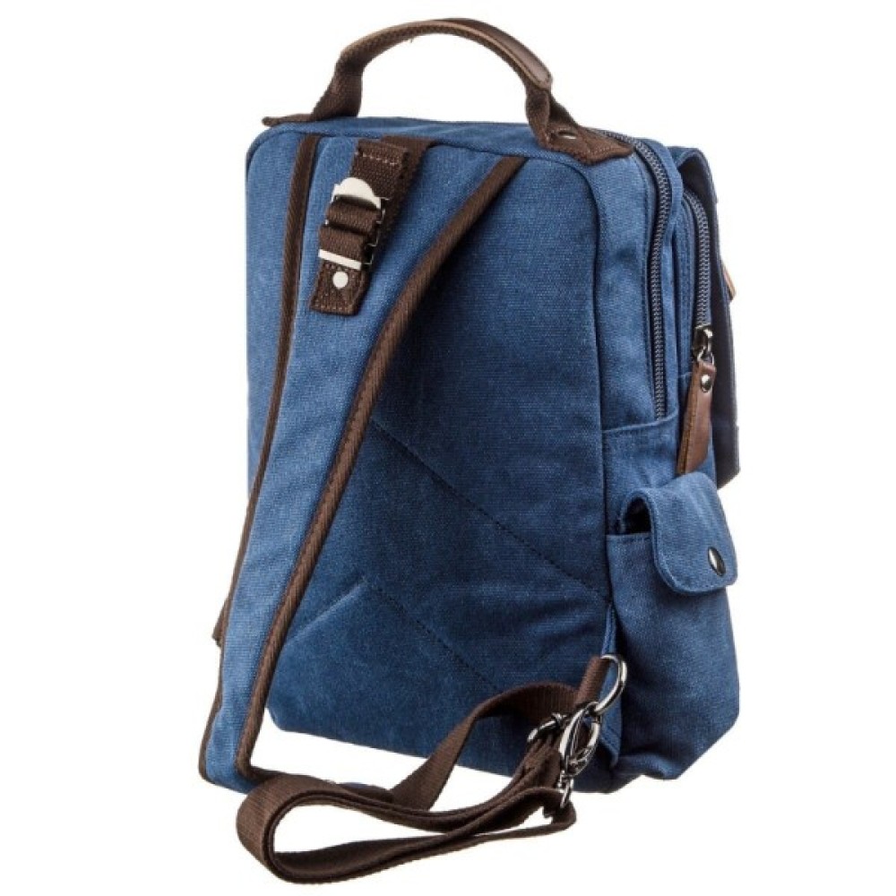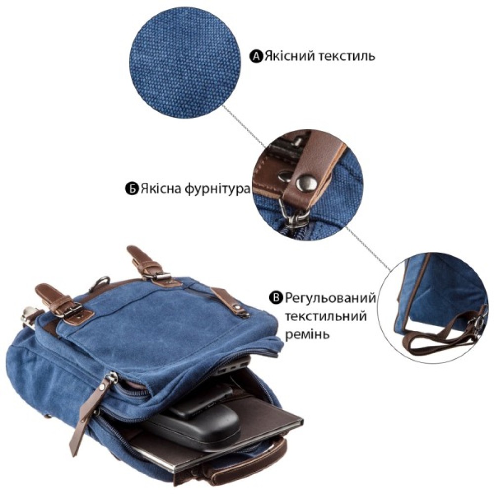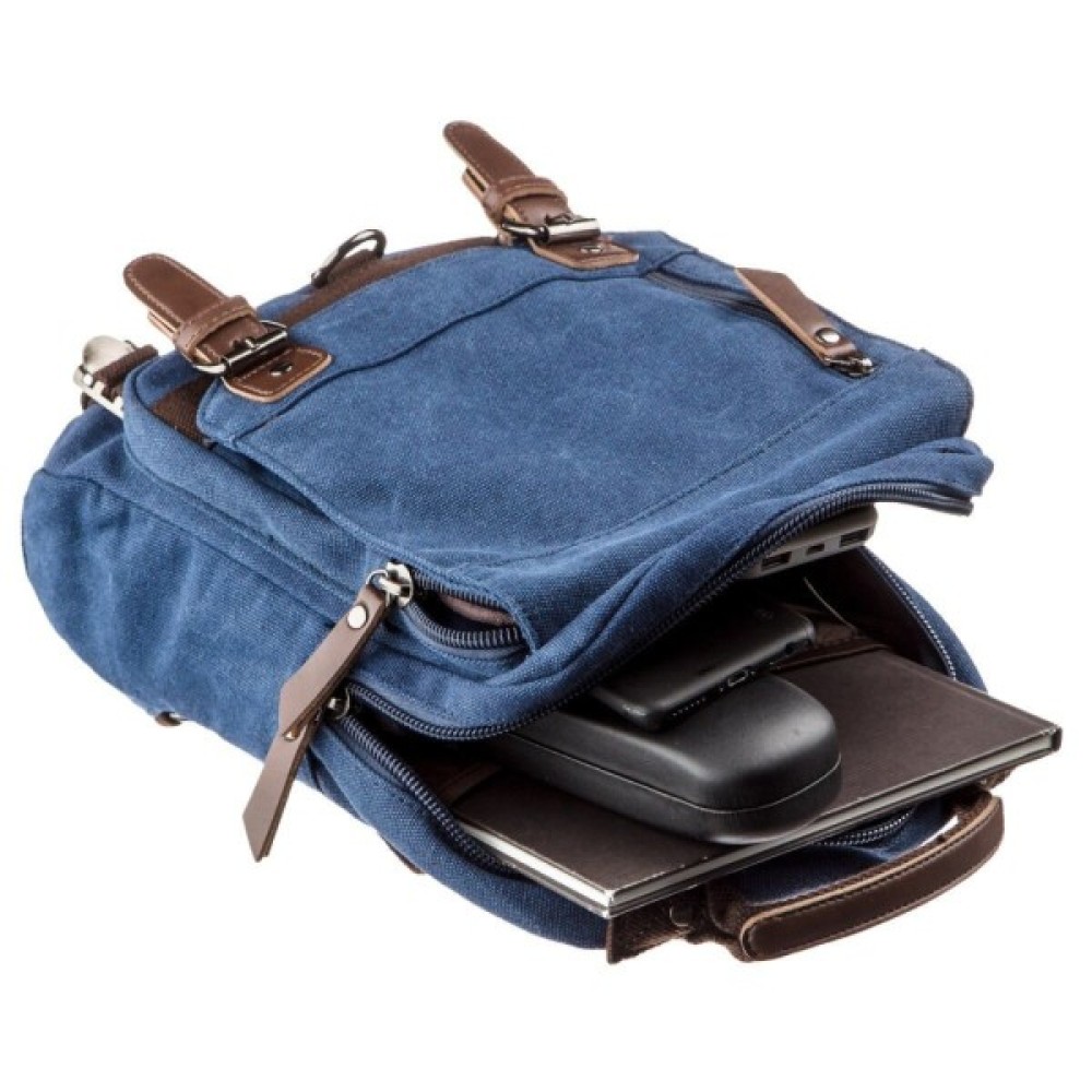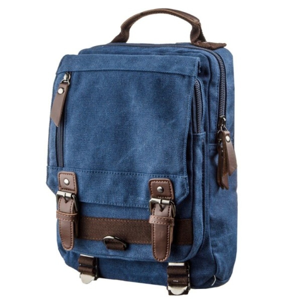Практична сумка-рюкзак із щільного текстилю має зручний функціонал з великою кількістю кишень.