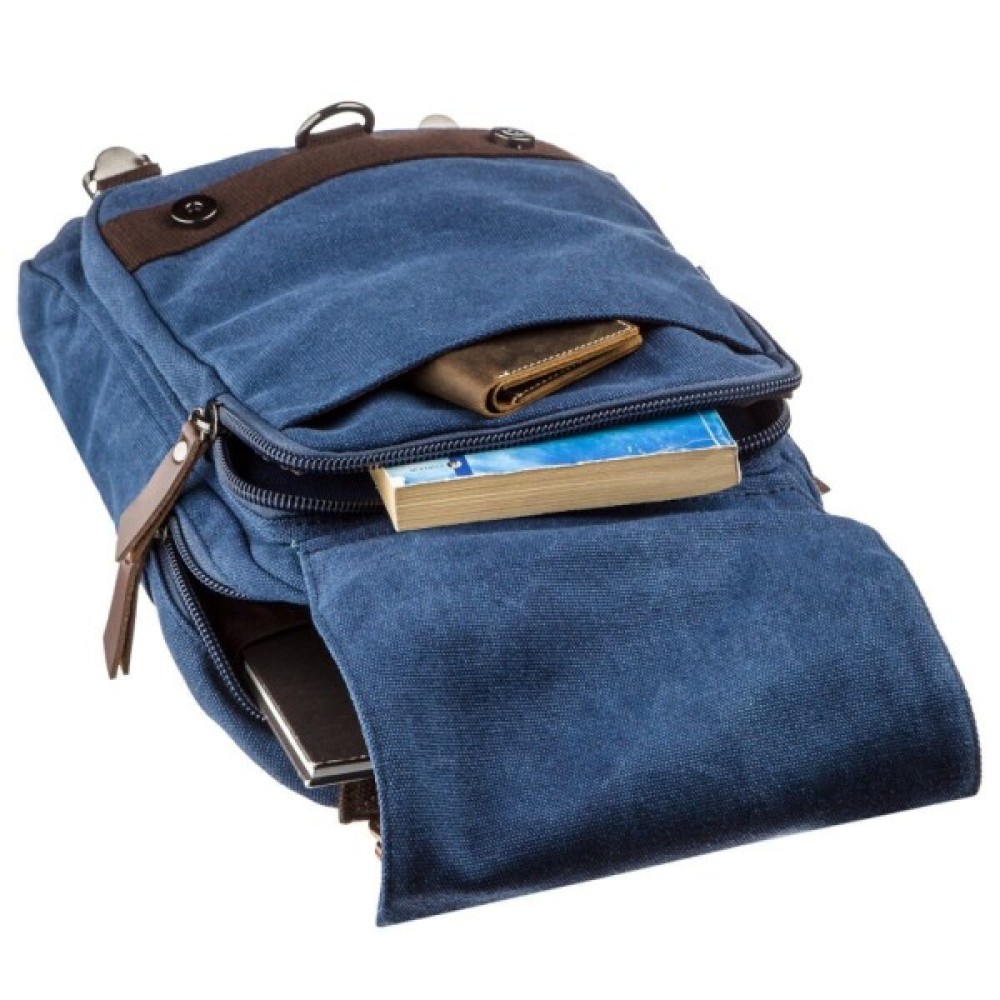 Додаткове відділення на блискавці під клапаном і відкрита накладна кишеня.