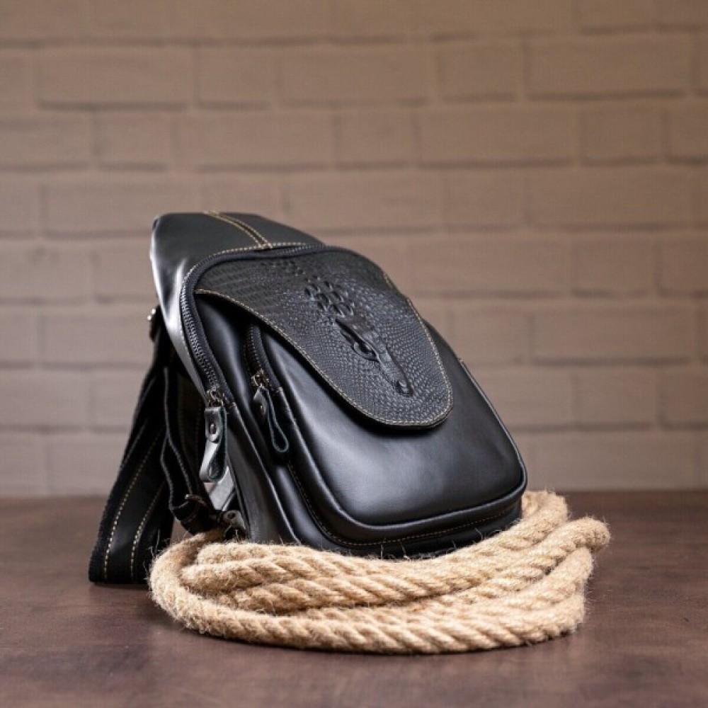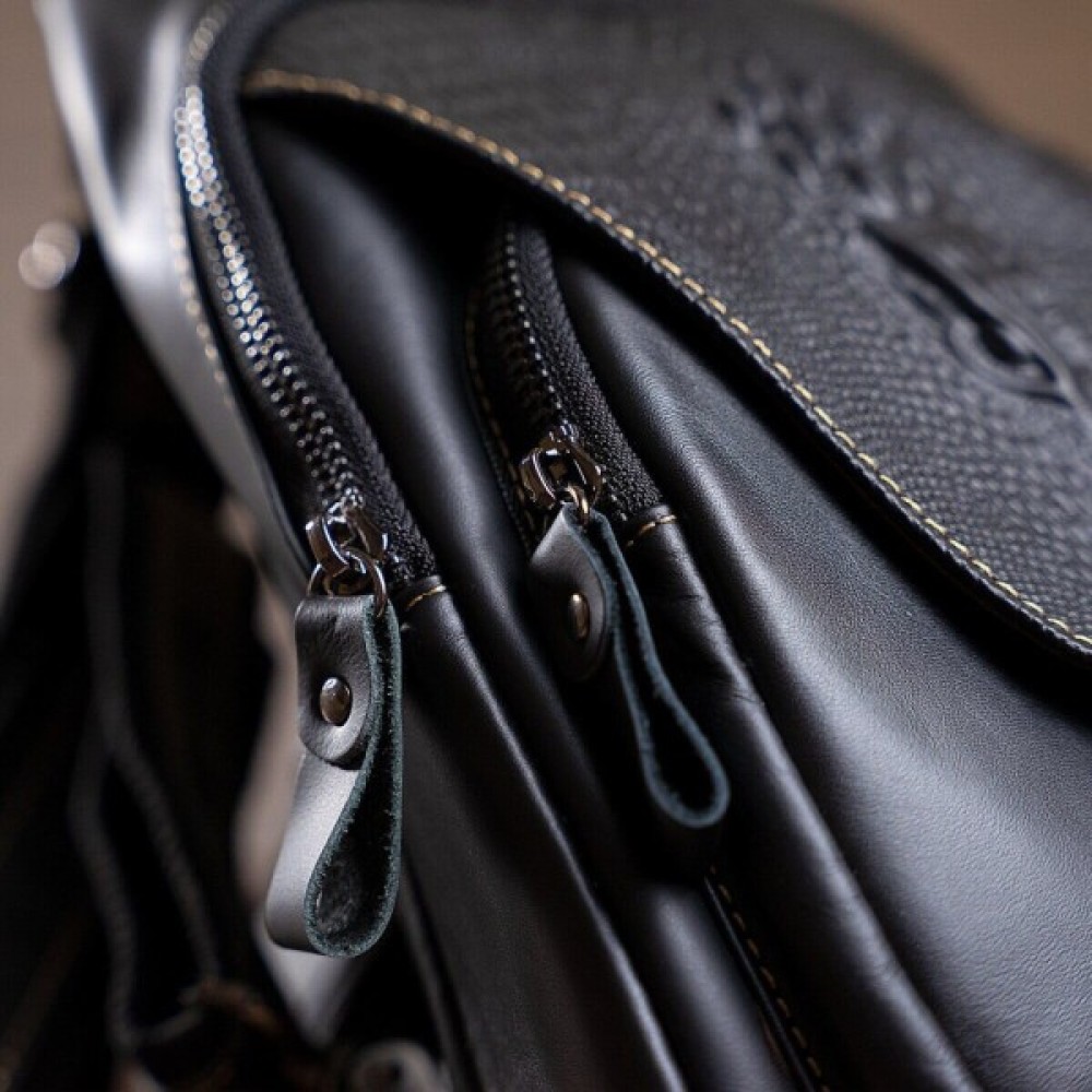 Особливості текстильний регульований незнімний ремінець на праве або ліве плече; кишеня на блискавці, на лицьовій стороні; дві кишені на блискавці, на тильній стороні