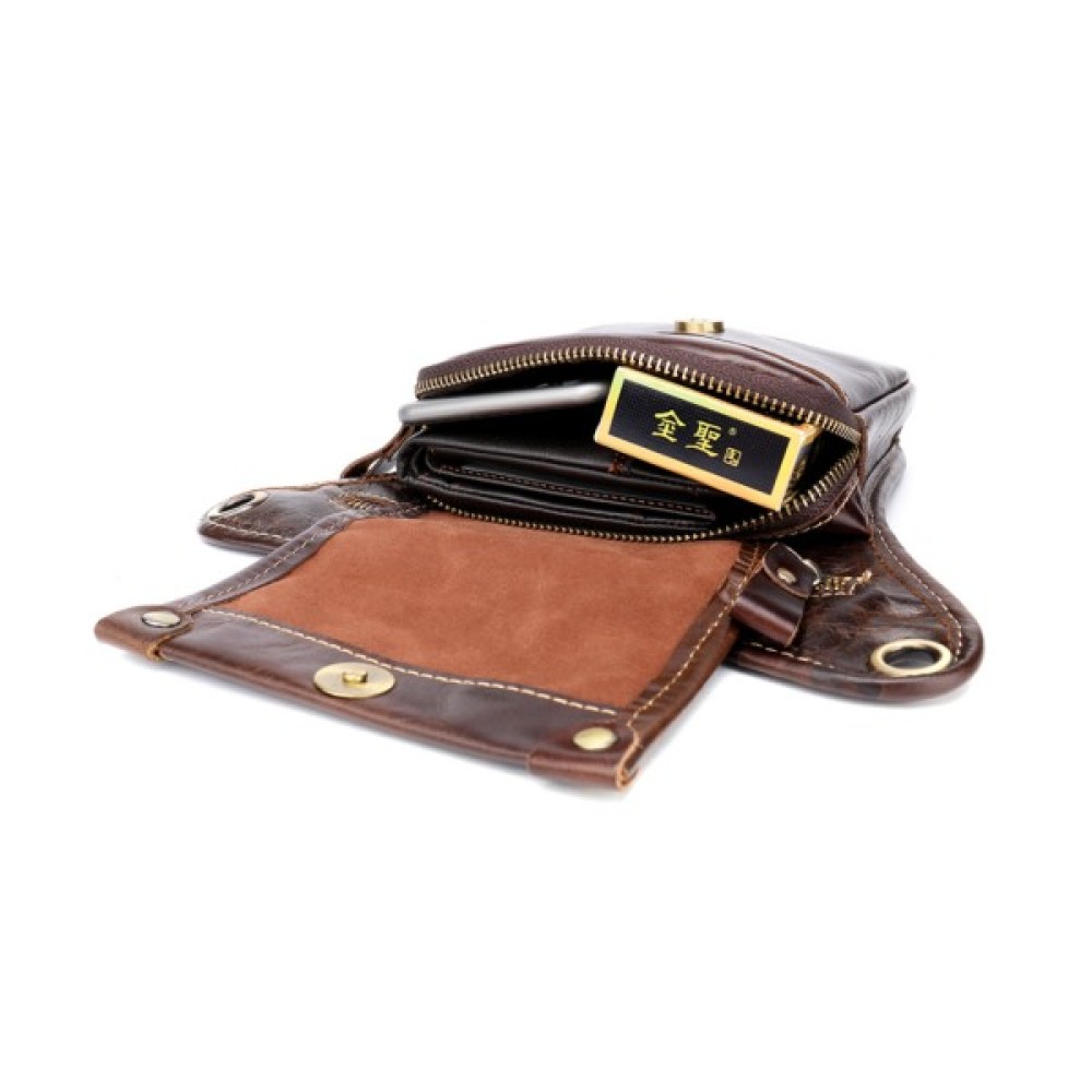 Компактна шкіряна сумка, яка з легкістю може замінити вам барсетку. Особливістю сумки є те, що ви можете носити її, повісивши на свій ремінь або ногу. З такою сумочкою все буде у вас під рукою і перед очима. Сумка, яка кріпиться на пояс, забезпечить безпеку всім вашим особистим речам і звільнить руки.