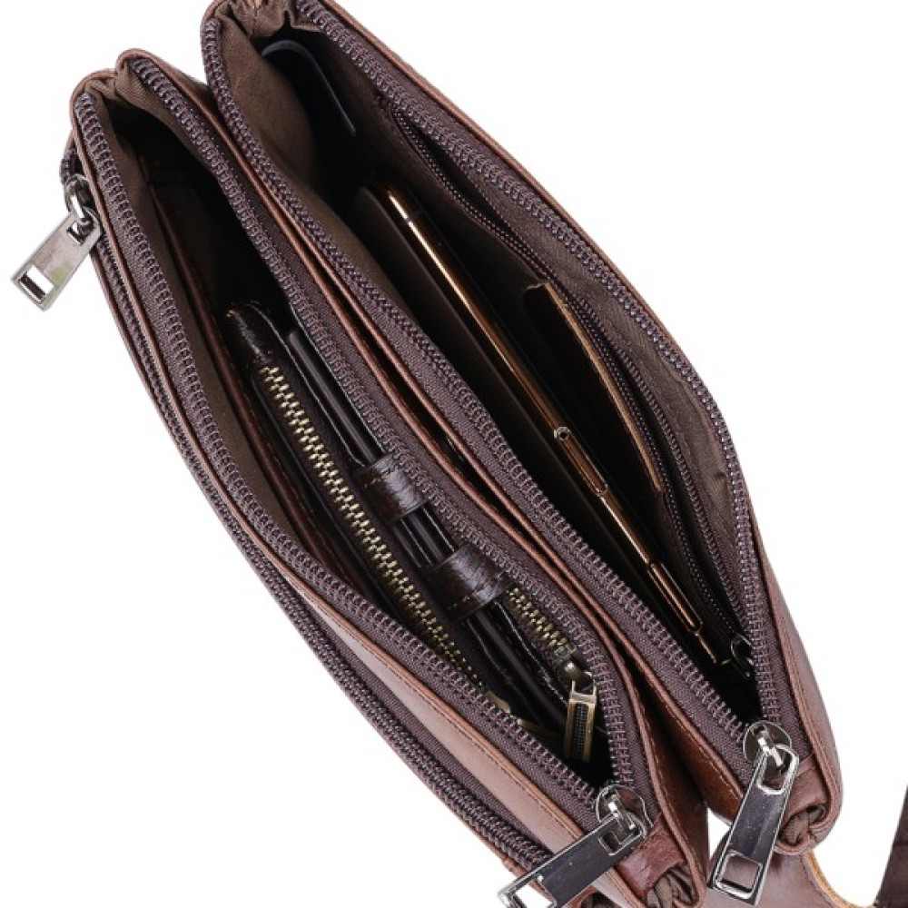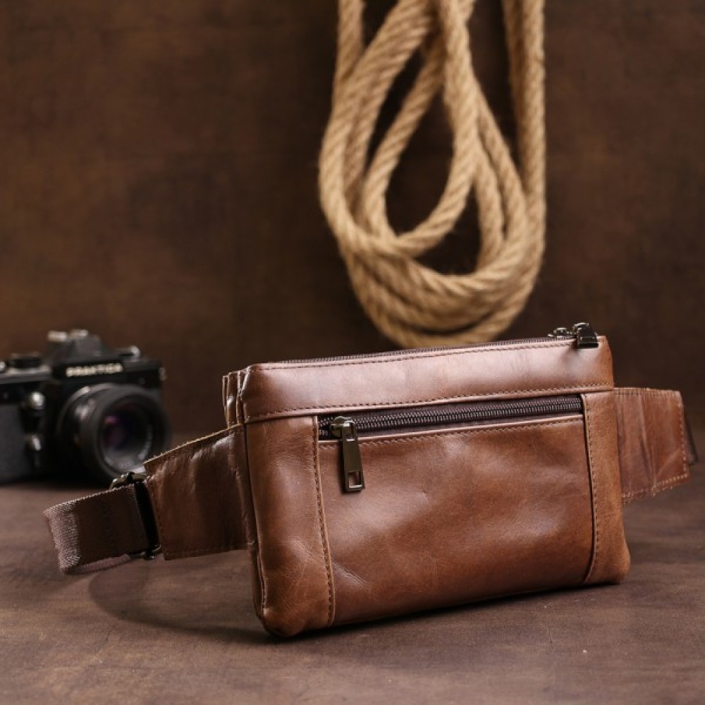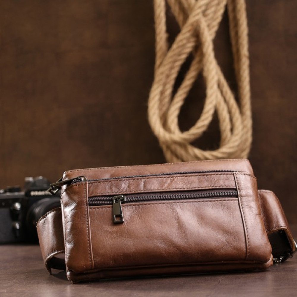 Стильна і практична сумка на пояс в шикарному коричневому кольорі від відомого виробника. Виконана дана модель з натуральної висококласної шкіри з відмінною зносостійкістю. Вас також порадують численні відділення та кишені на блискавці, в яких можна заховати все необхідне.