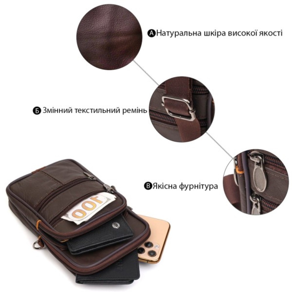 Сумка Vintage На пояс з натуральної шкіри Коричнева (21482)