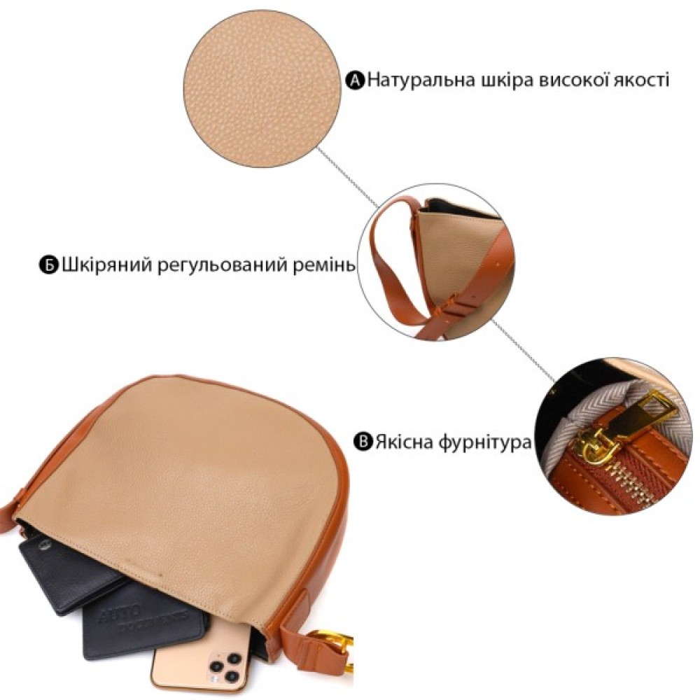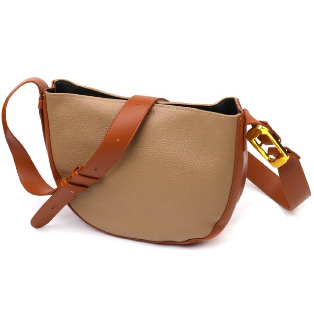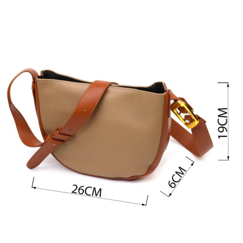 Напівкругла крос-боді з натуральної шкіри Бежева
