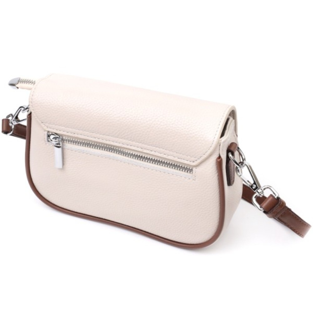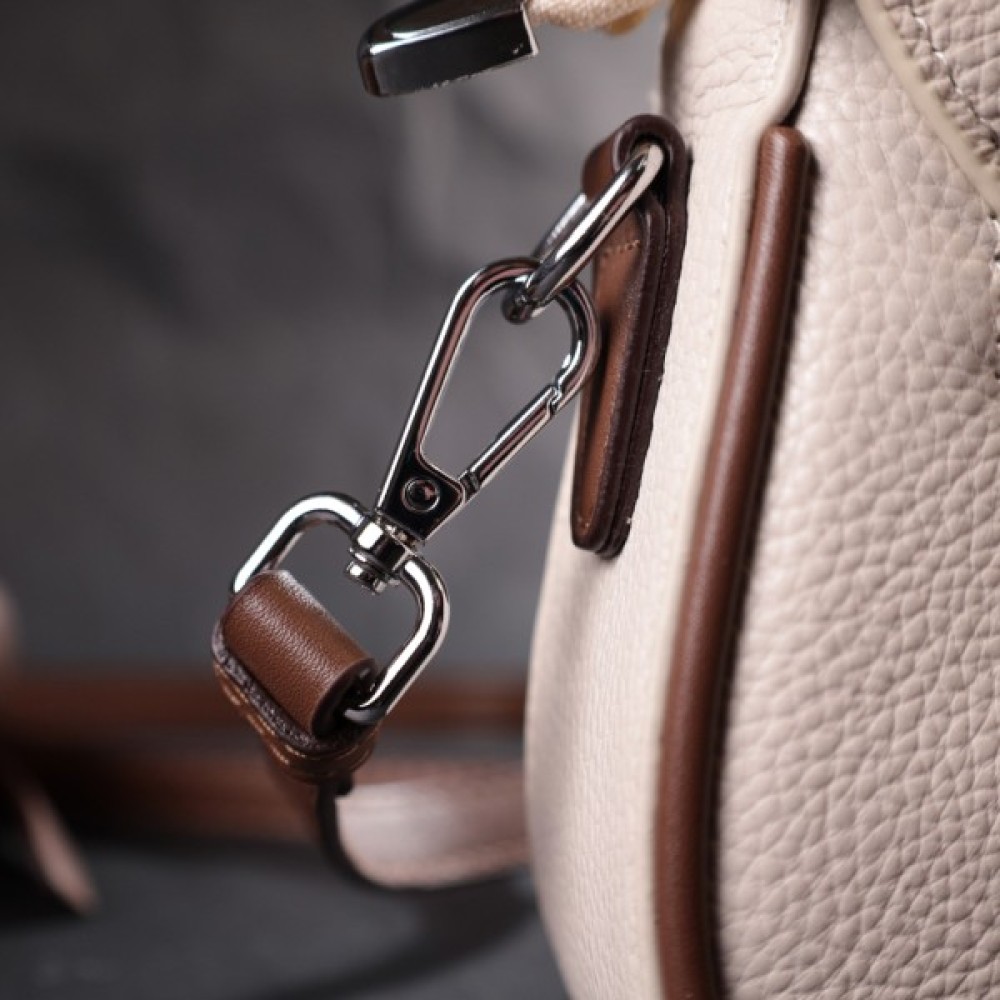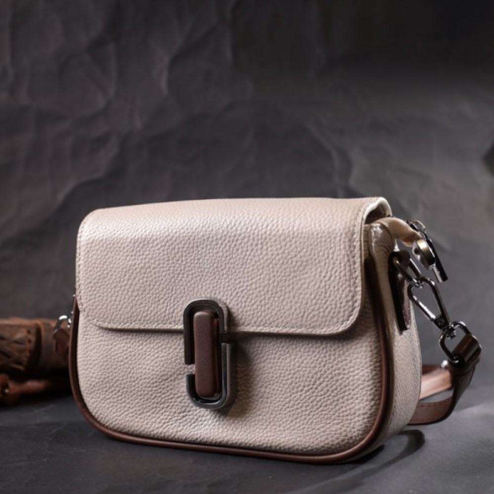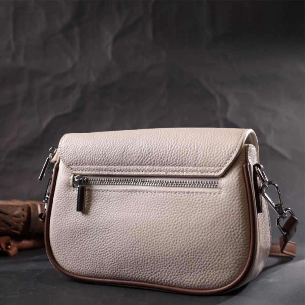 Неперевершена жіноча сумка з якісної натуральної шкіри, яка довго носиться і не втрачає свого первісного вигляду. Аксесуар складається з одного основного відділення всередині якого потайна кишеня на блискавці, кишеня відкритого типу та кишеня-перегородка, а зовні, на тильній стороні розташована кишеня на блискавці. Носити сумку можна в руці, на плечі і через плече, для цього є шкіряний ремінь, що знімається. У виробі використано якісну фурнітуру срібного кольору. Універсальний варіант сумки як на вечір так і як сумочка на кожен день.