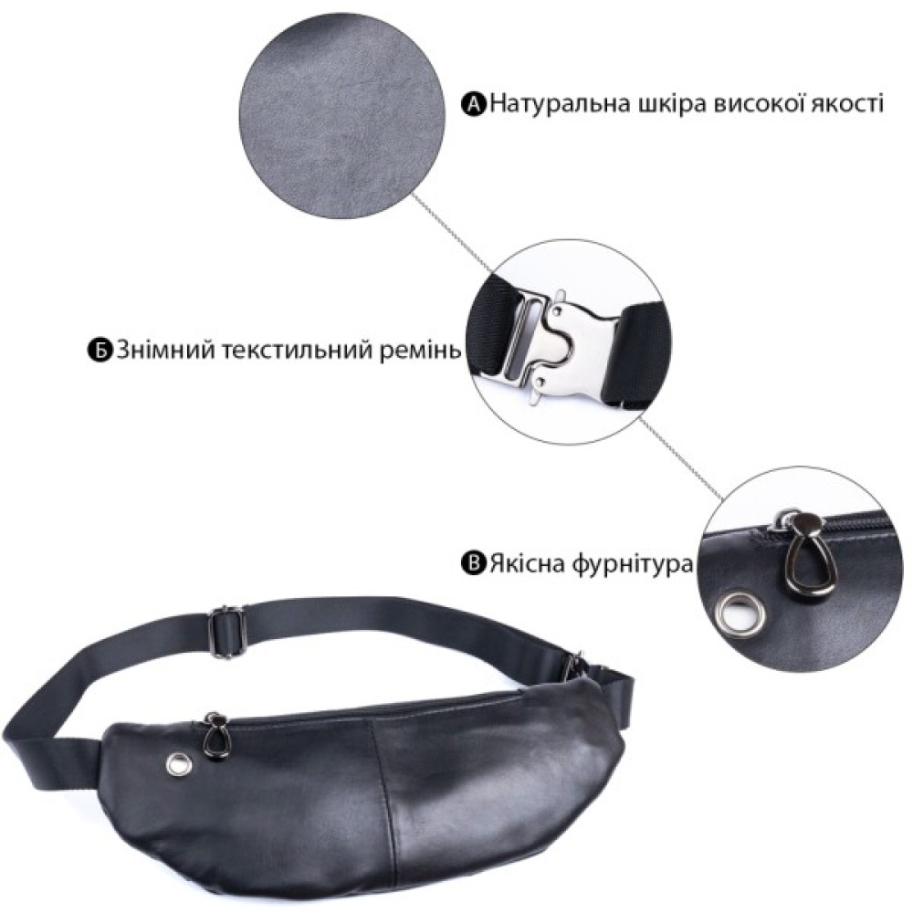 Виріб має простий, але в той же час дуже практичний і модний дизайн. Виробництво - фабричний Китай високої якості. Модель можна носити декількома способами: на спині, на поясі, на грудях. Бананка - must have цього сезону. Шкіряна поясна сумка стане ідеальним подарунком. Упакована в пилозахисний, текстильний чохол.