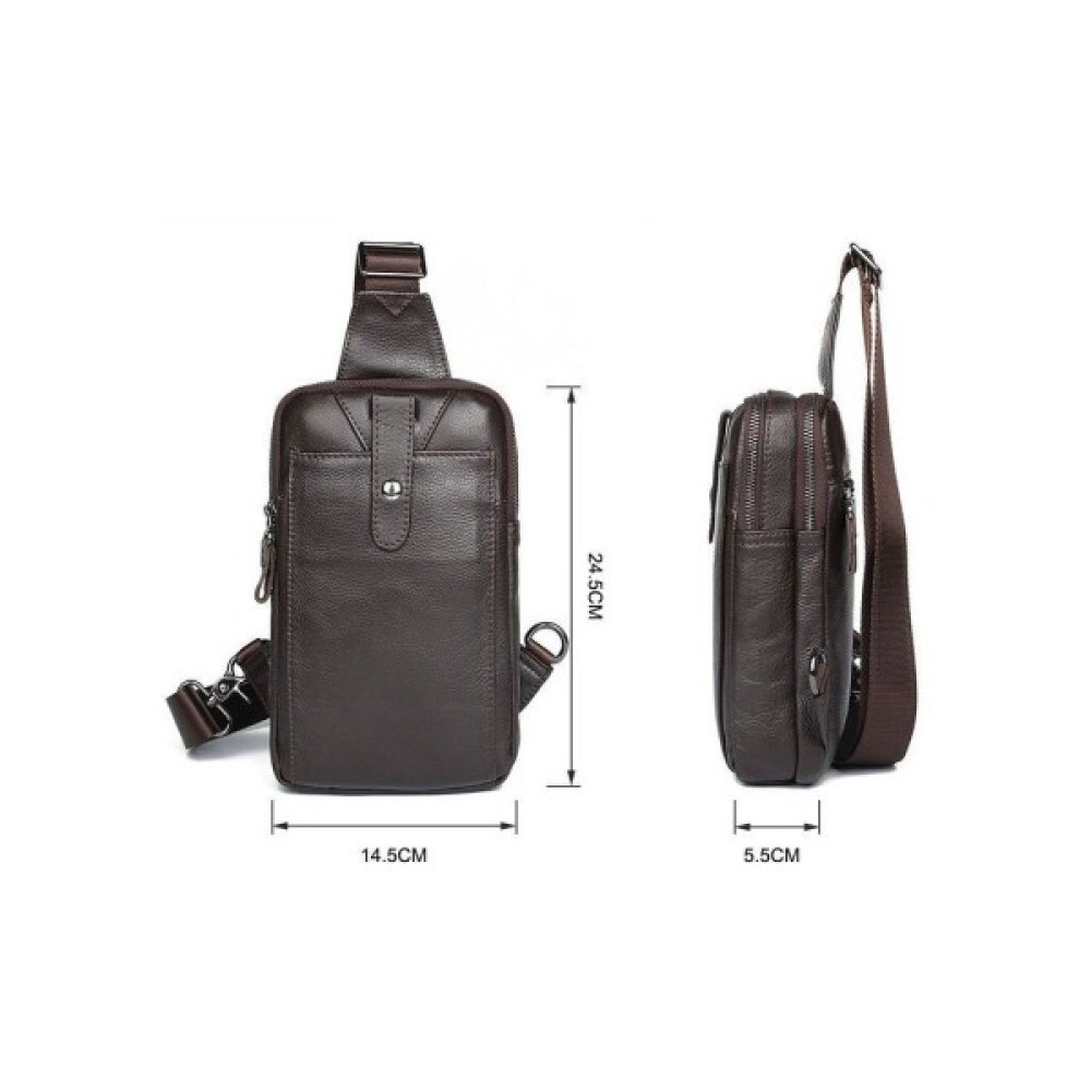 Компактна шкіряна чоловіча сумка з натуральної шкіри через плече. Невеликий розмір і легка вага сумки підкуповують клієнтів. Модель виконана в шкірі флотар, яка зовсім не вибаглива в догляді. По краях аксесуар прошитий рівною ниткою. Сумка стане прекрасним подарунком для будь-якого чоловіка.