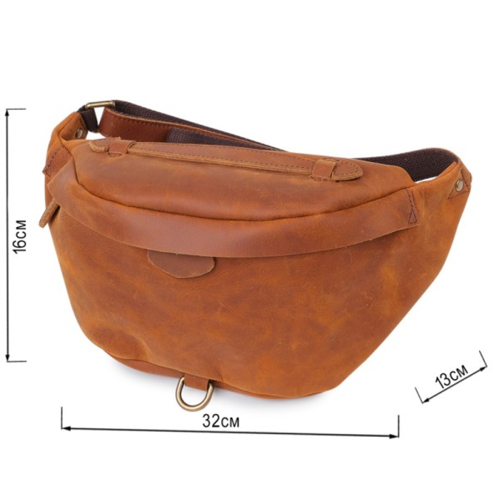 Чудова чоловіча сумка на пояс в красивому яскравому коричневому кольорі.