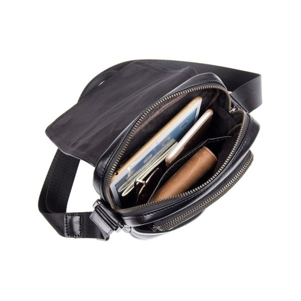 Компактна сумка, виготовлена з натуральної гладкої шкіри з легким блиском. Використано надійну фурнітуру і зносостійкий текстиль для внутрішньої підкладки. Якісна строчка виконана в тон виробу — усі шви рівні та акуратні.