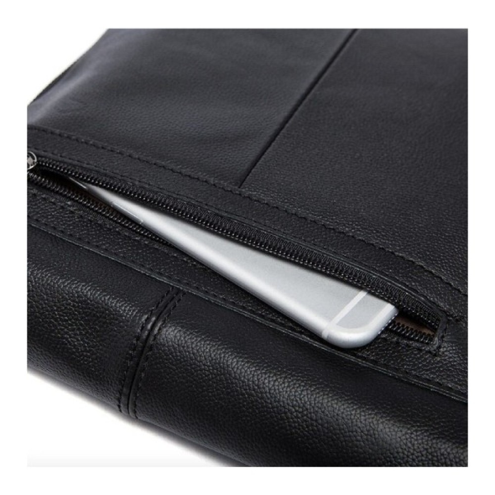 Оригінальна сумка з натуральної шкіри. Її особливістю є те, що ви можете самостійно регулювати її обсяг за допомогою блискавки знизу аксесуару. Сумка доповнена якісною фурнітурою в дизайн виробу кольору темного срібла. Сумка має невеликий розмір і досить містка. Усередині аксесуару якісна текстильна підкладка коричневого кольору. По краях сумка прошита рівною чорною ниткою. Ідеальний варіант для повсякденного використання. Сумка відмінно підійде вам для роботи або навчання. Аксесуар упакований в тканинний мішок для захисту від пилу і бруду, в той час як ви її не носите. Буде бажаним подарунком для близької людини.