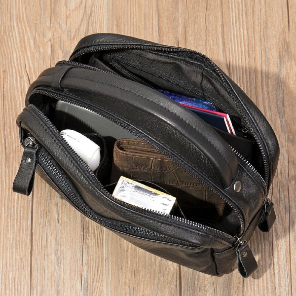 Оригінальна барсетка в гладку шкіру горизонтального типу на двох блискавках. Виріб виконаний з м'якої щільної шкіри, приємної на дотик. Аксесуар дуже місткий. Шкіряні барсетки служать набагато довше текстильних.