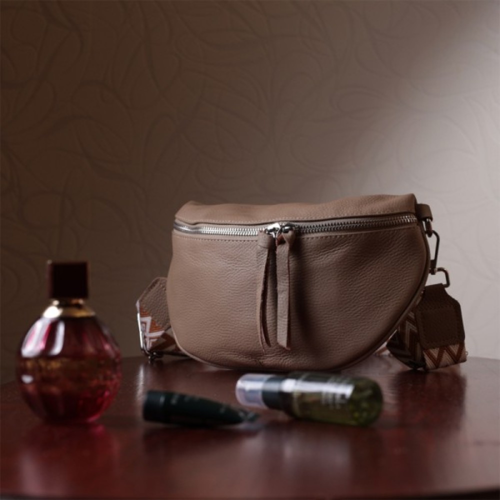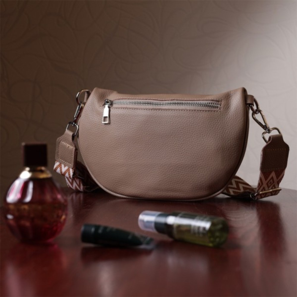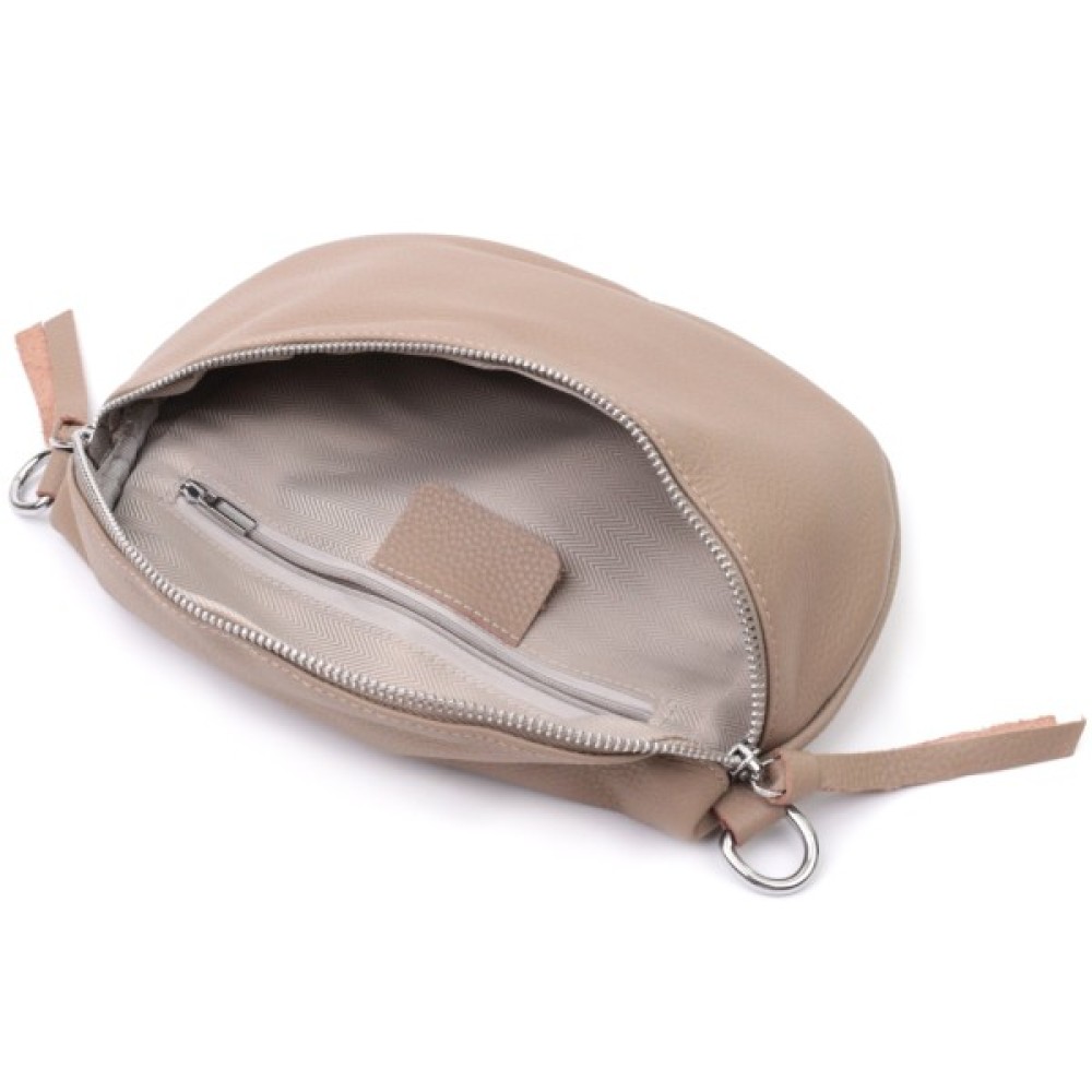 Стильна сумка через плече з натуральної шкіри флотар, яка невибаглива у догляді та довго носиться. Аксесуар складається з основного відділення, кишені на блискавці всередині, а також міні-гаманця, що знімається. Носити сумку можна на плечі і через плече, для цього є текстильний ремінь, що знімається. В аксесуарі використано якісну фурнітуру кольору срібла.