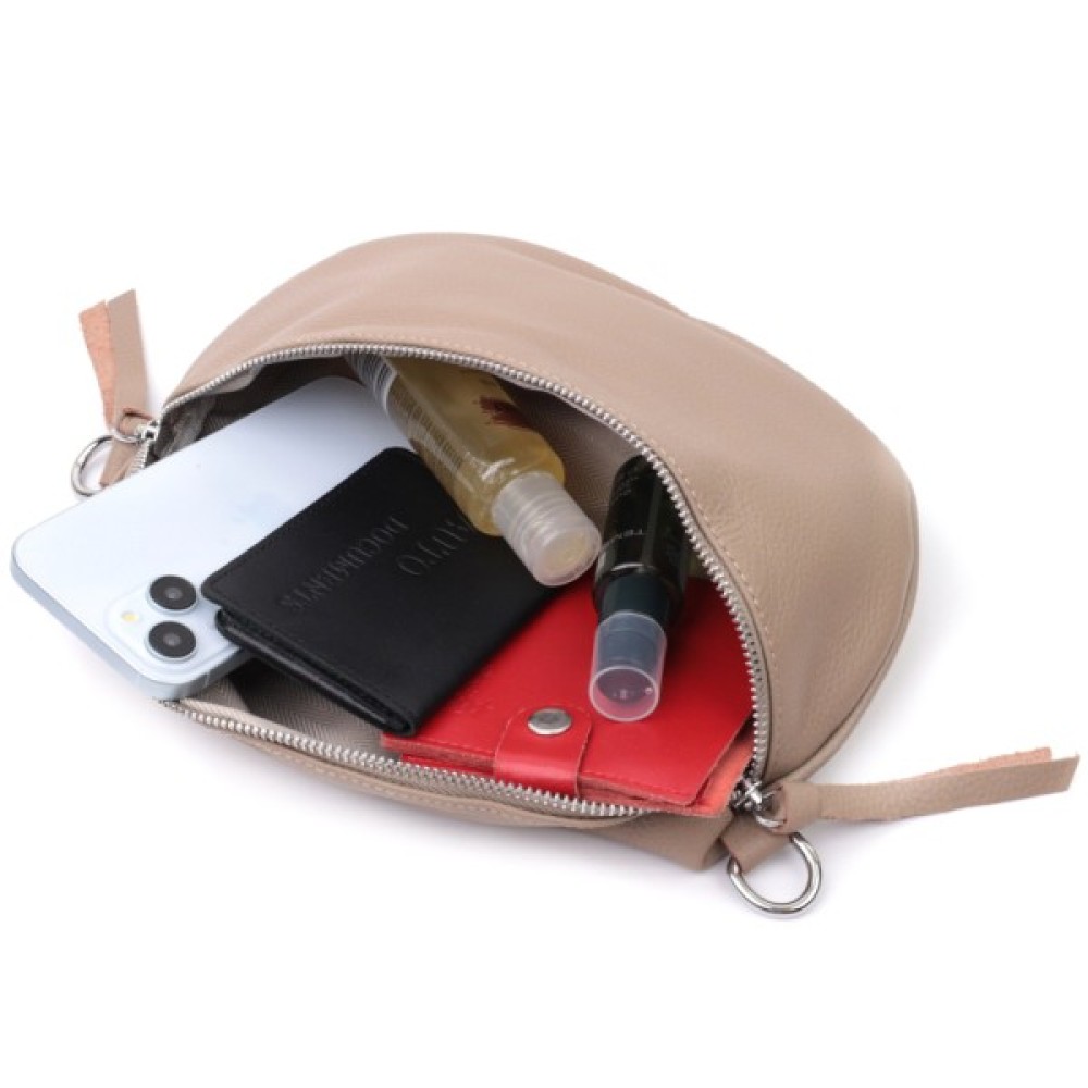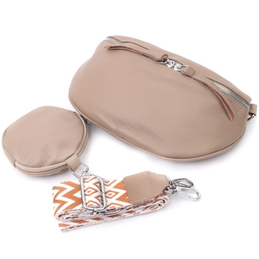 Шкіряна жіноча через плече з міні гаманцем Бежева