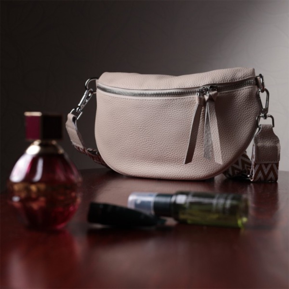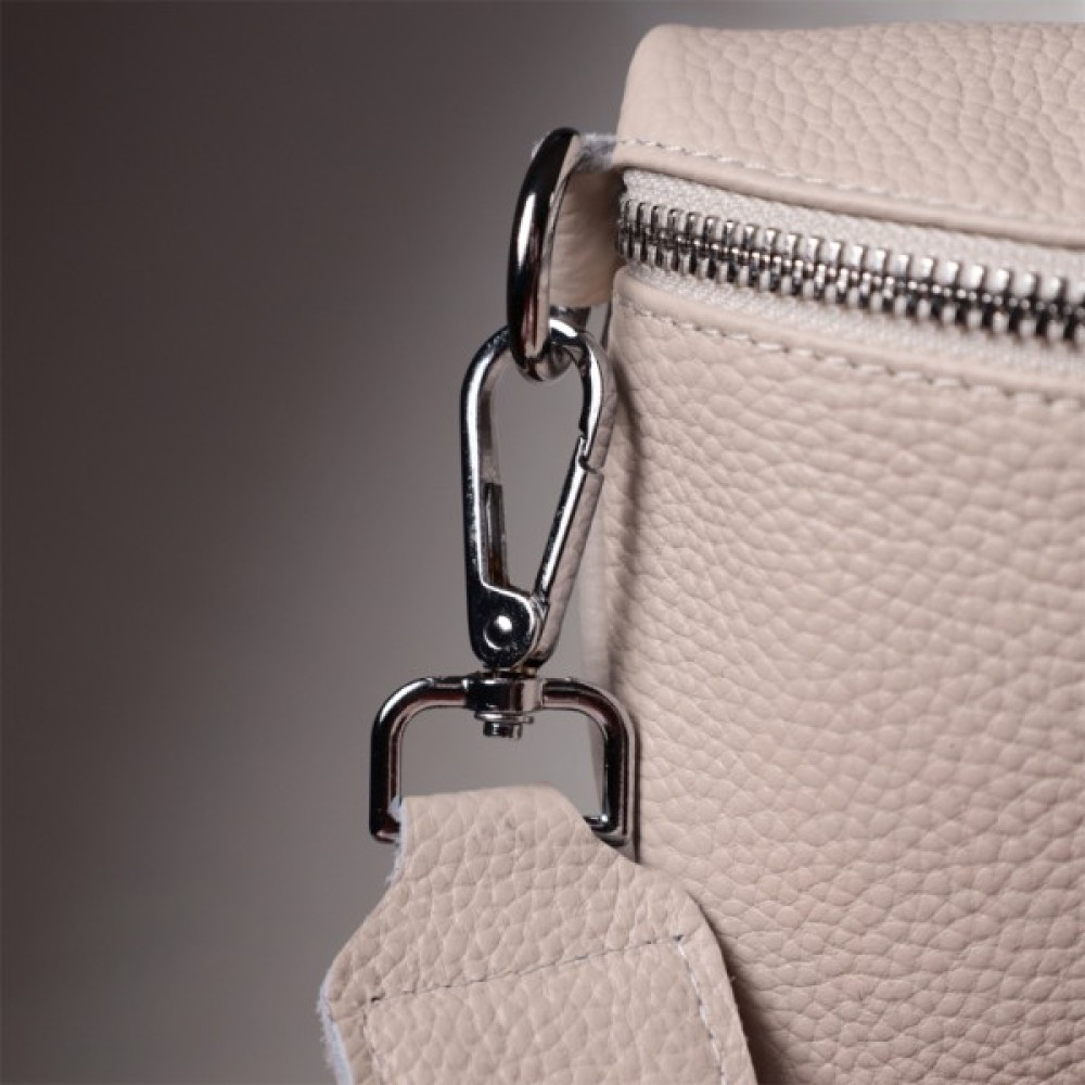 Зручна сумка через плече з натуральної шкіри флотар, яка невибаглива у догляді та довго носиться. Аксесуар складається з основного відділення, кишені на блискавці всередині, а також міні-гаманця, що знімається. Носити сумку можна на плечі і через плече, для цього є текстильний ремінь, що знімається. В аксесуарі використано якісну фурнітуру кольору срібла.