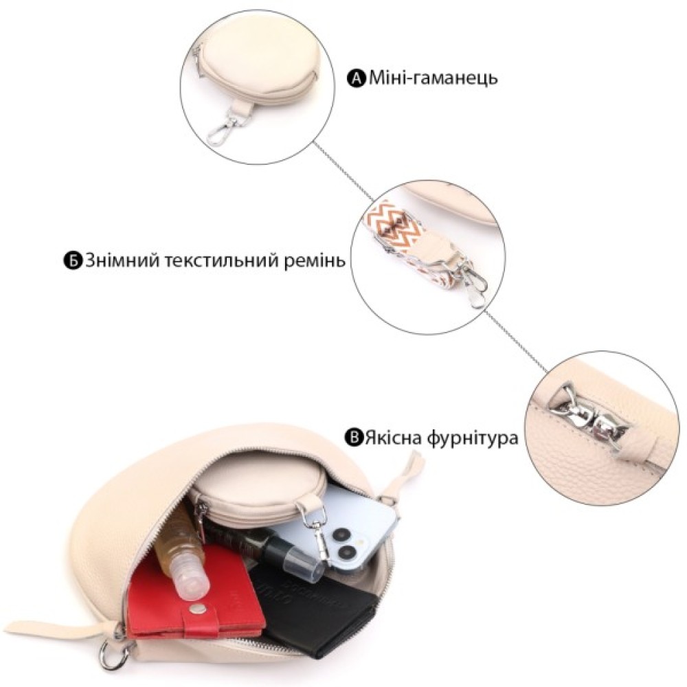 Модель Шкіряна жіноча через плече з міні гаманцем Біла