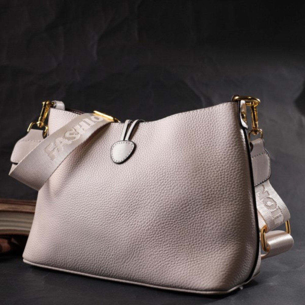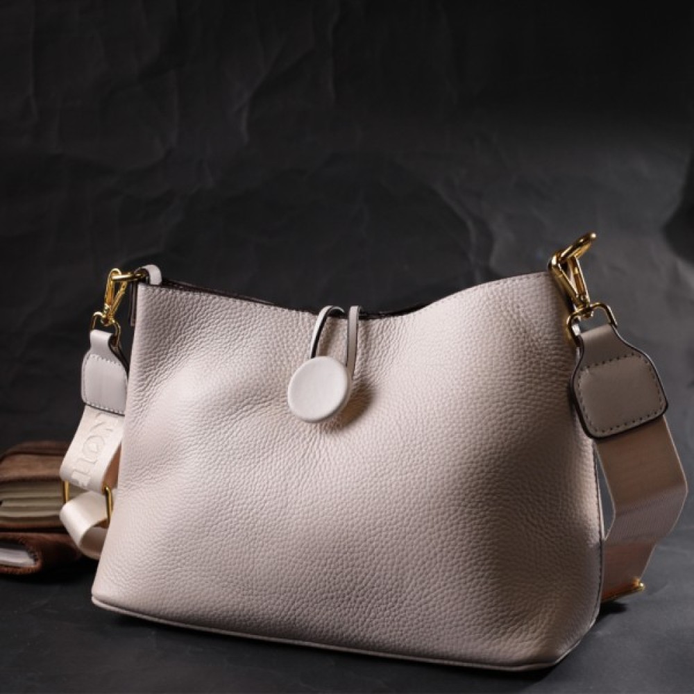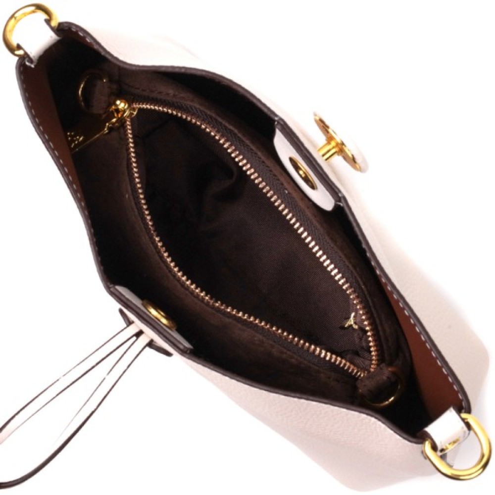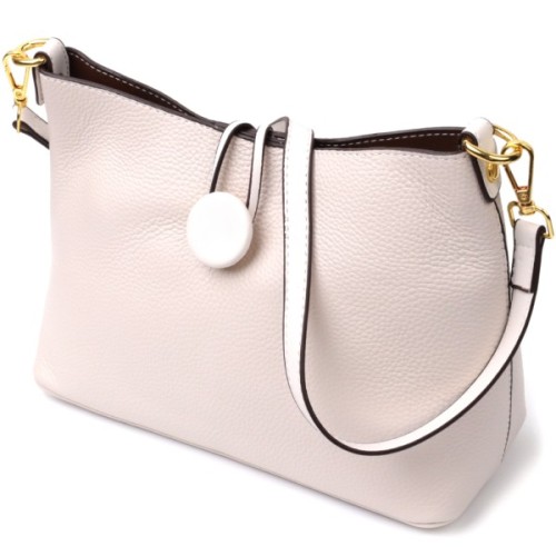 Сумка Vintage Шкіряна жіноча із застібкою ґудзиком Біла (22321)