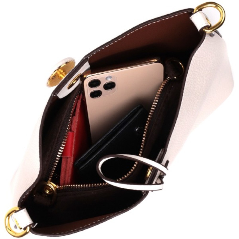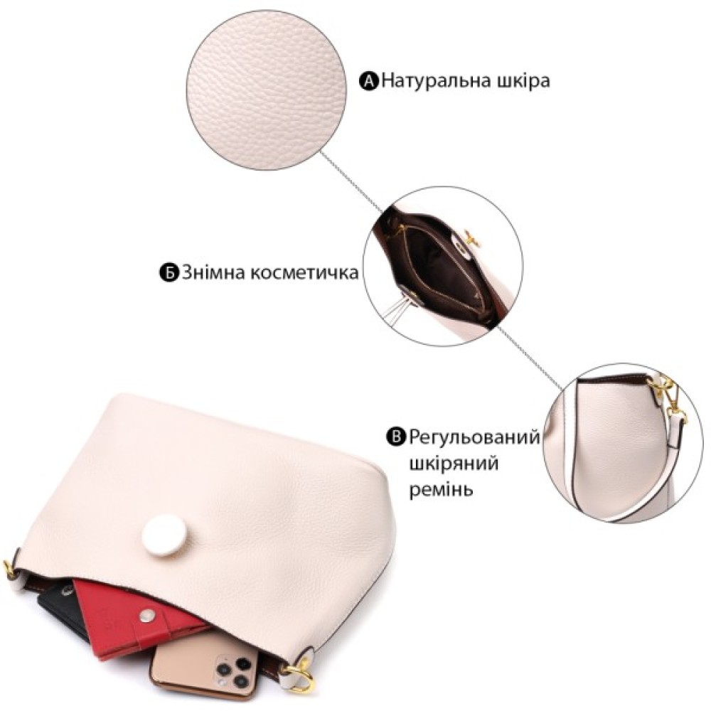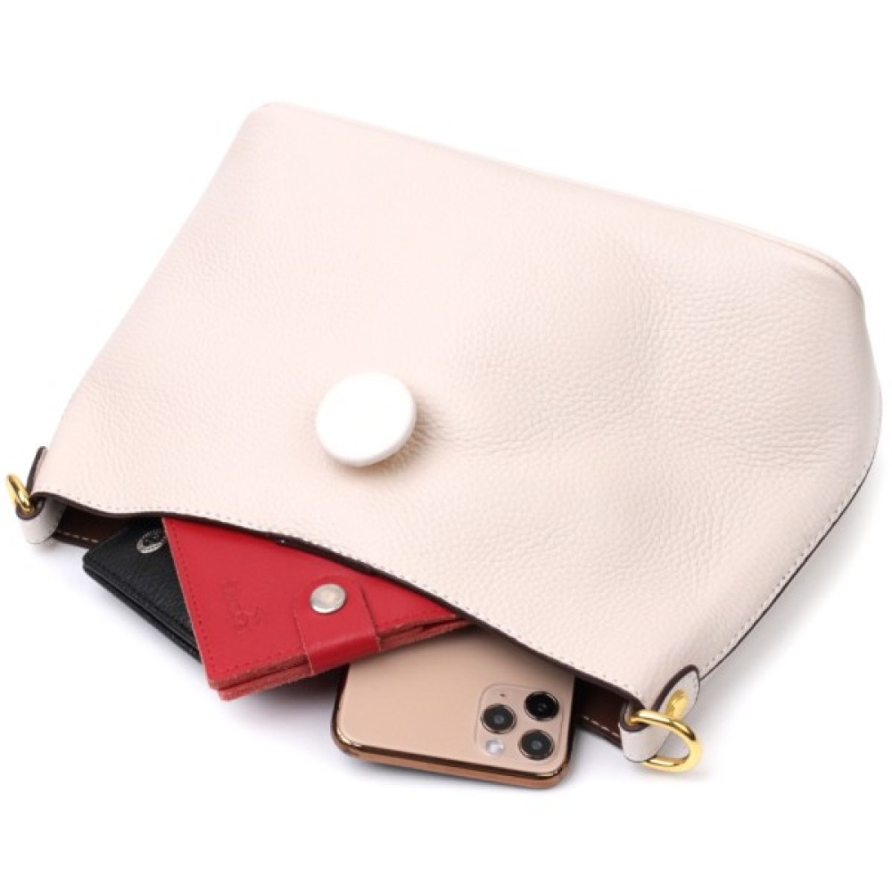 Сумка, Vintage, Шкіряна, жіноча, із, застібкою, ґудзиком, Біла, 22321