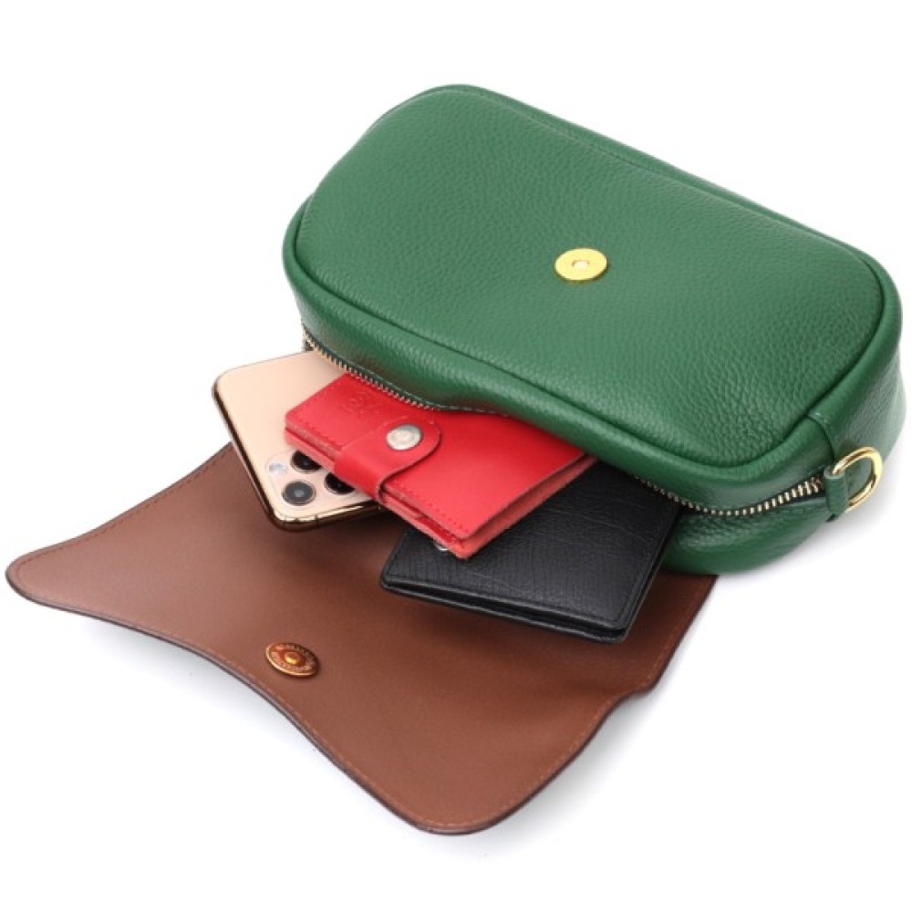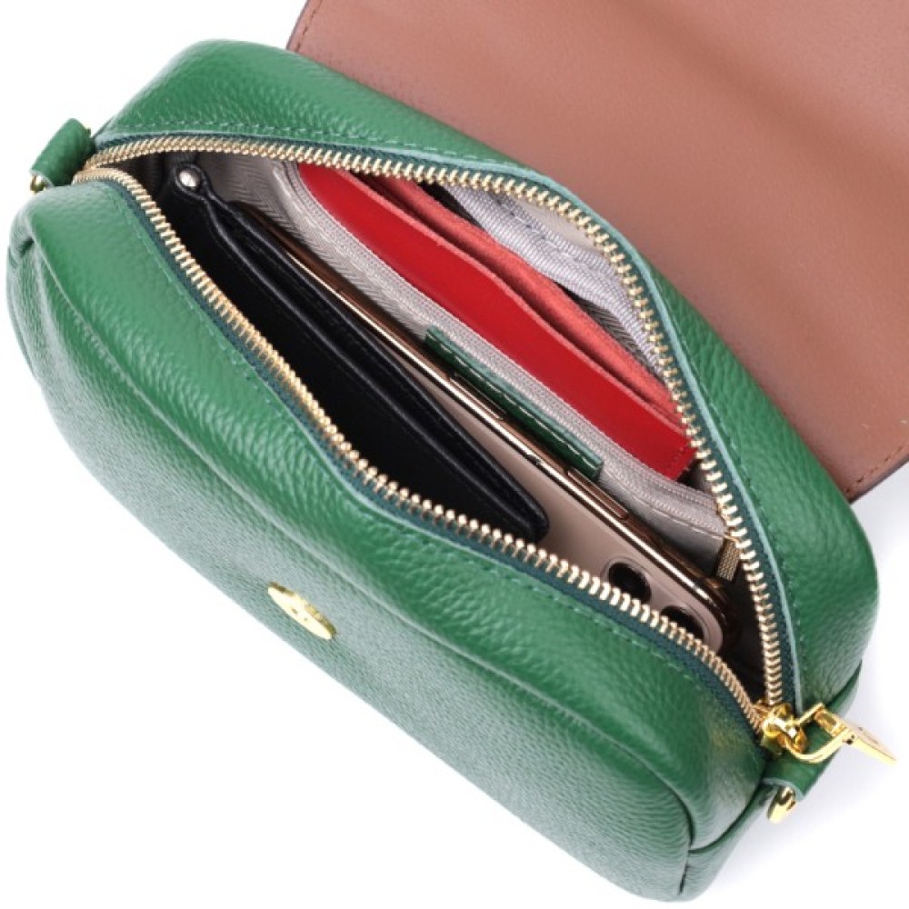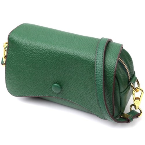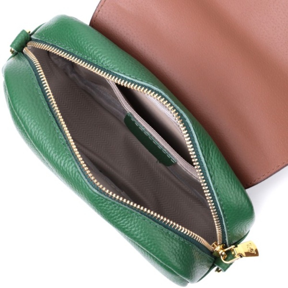 Модель Шкіряна жіноча з фігурним клапаном Зелена