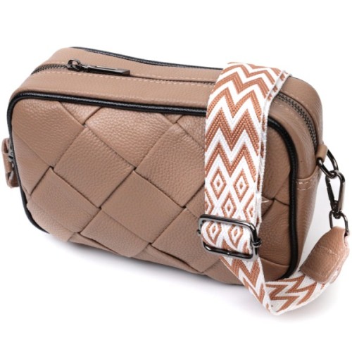 Стильна жіноча сумка з ромбоподібною палітуркою на лицьовій стороні.