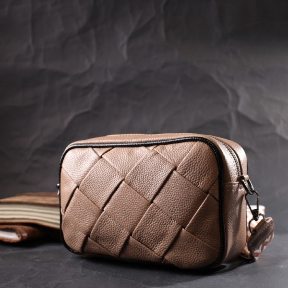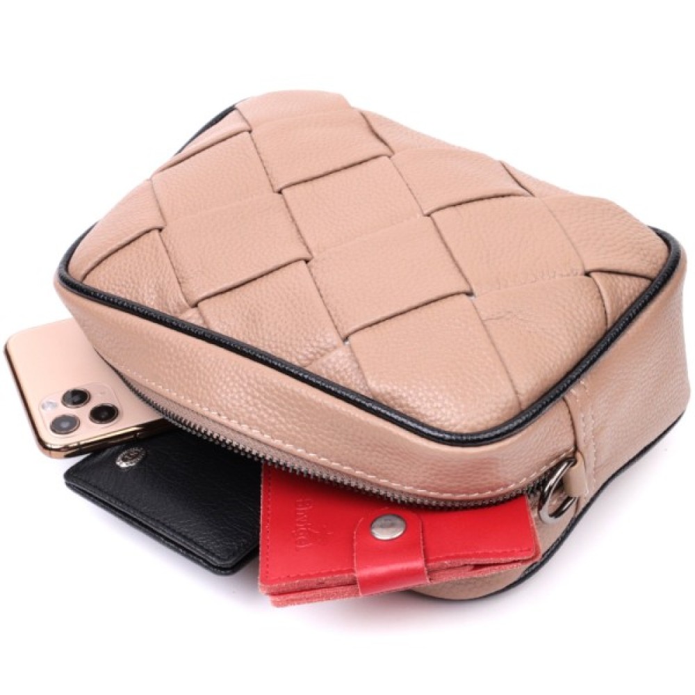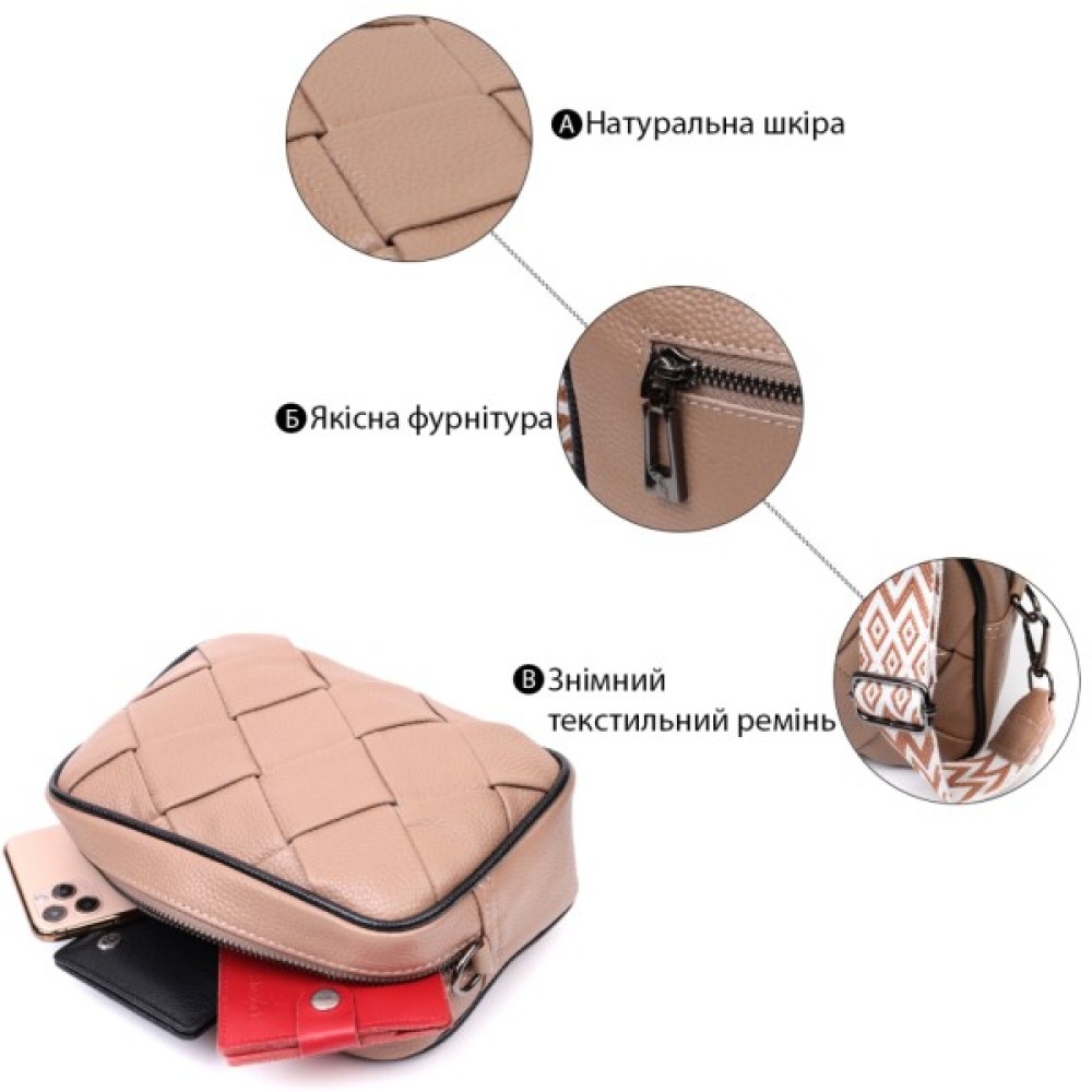 Шкіряна жіноча з плетінням Бежева