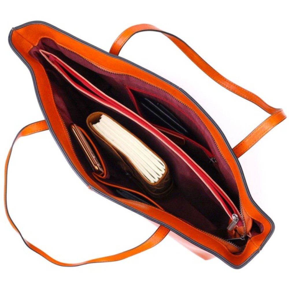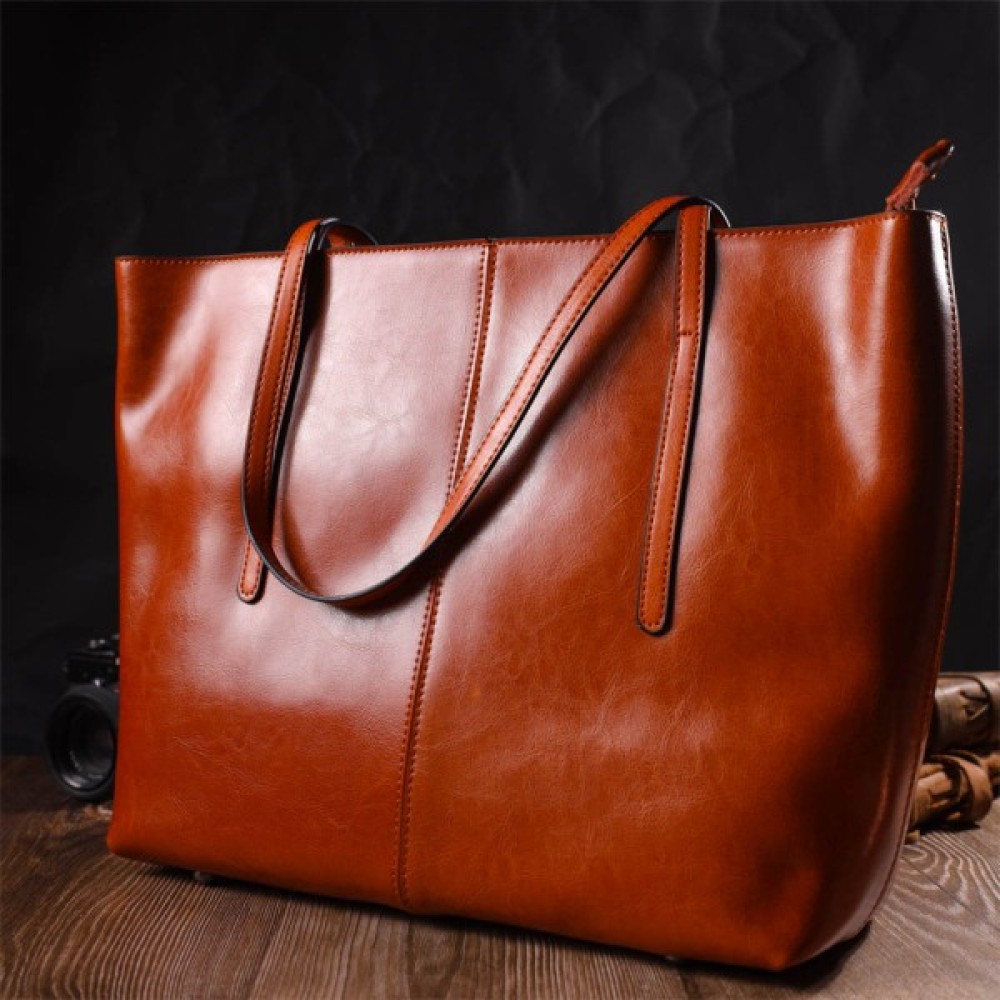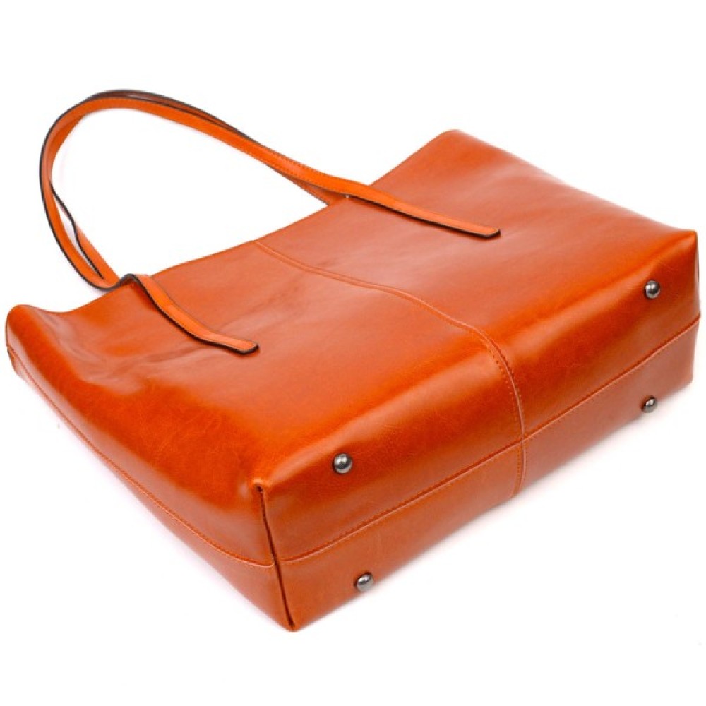 Жіноча сумка шоппер з натуральної шкіри рудого кольору