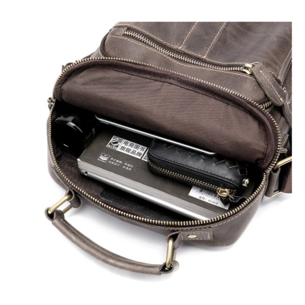 Солідна чоловіча сумка для планшета або документів на кожен день. Сумка буде ідеальним доповненням до ділового стилю. Аксесуар підкреслить ваш відмінний смак і додасть строгості. Модель доповнена золотистою фурнітурою в дизайн виробу. Всередині — якісна текстильна підкладка. Якщо ви перебуваєте в пошуках сумки на роботу — радимо вам такий варіант. Виріб має шикарну фактуру. Сумка стане чудовим подарунком для будь-якого чоловіка.