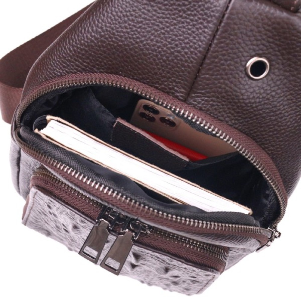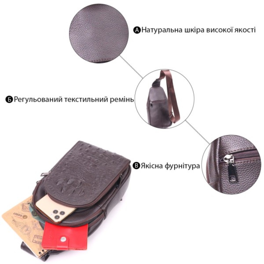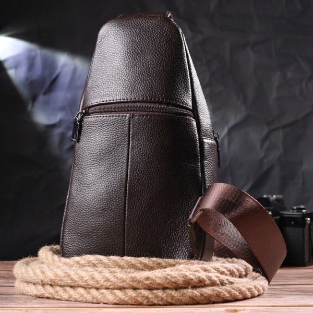 Практична чоловіча сумка слінг через плече з натуральної високоякісної шкіри з відмінними характеристиками якості та зносостійкості.