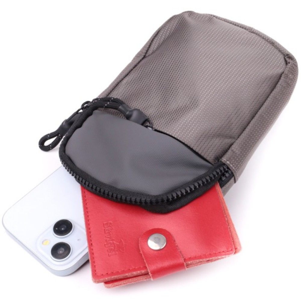Сумка вміщує основні речі — паспорт, телефон, ключі, гаманець тощо.