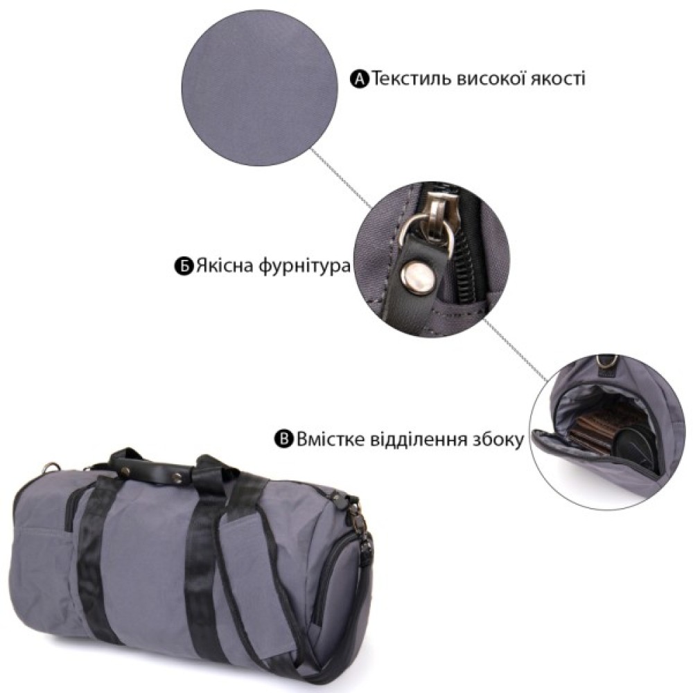 Сумка, Vintage, Спортивна, текстильна, Сіра, 20641