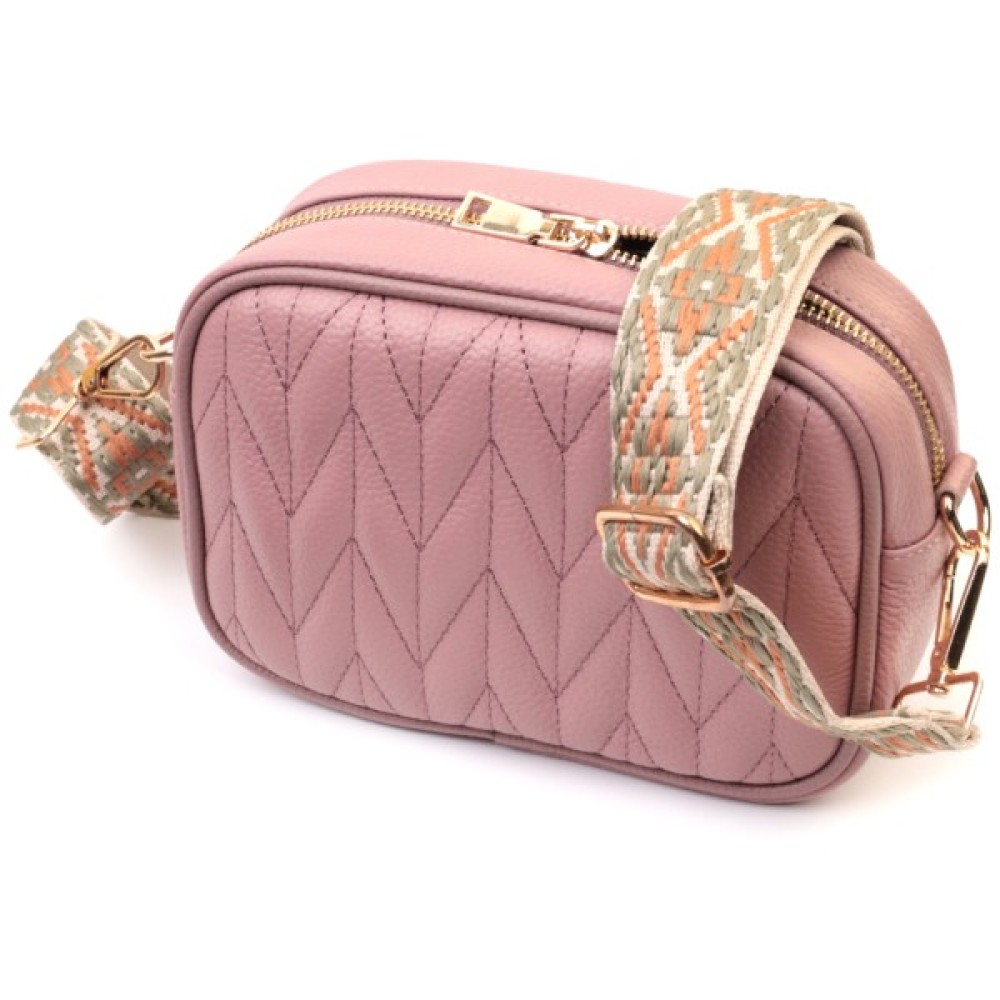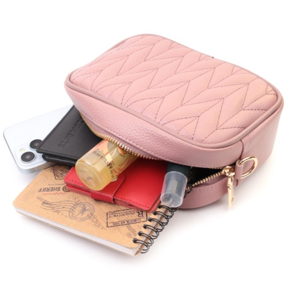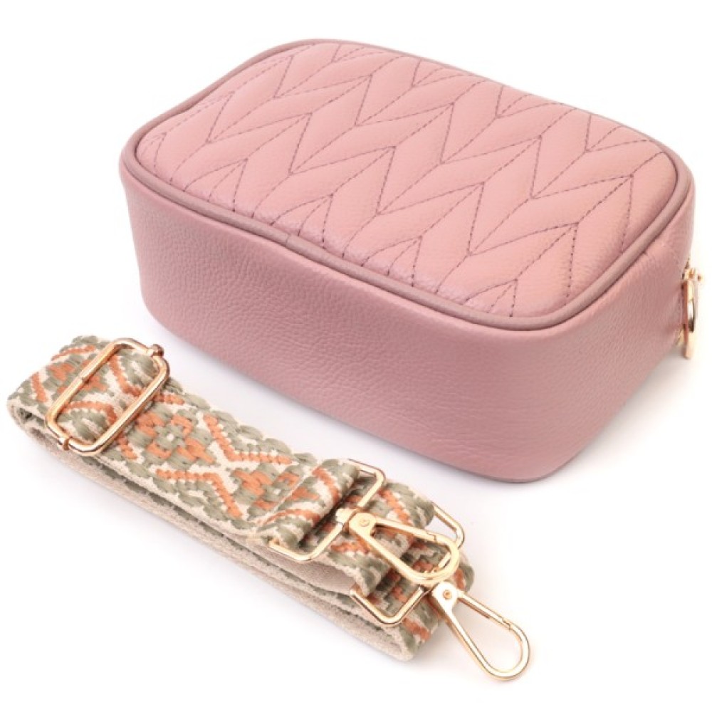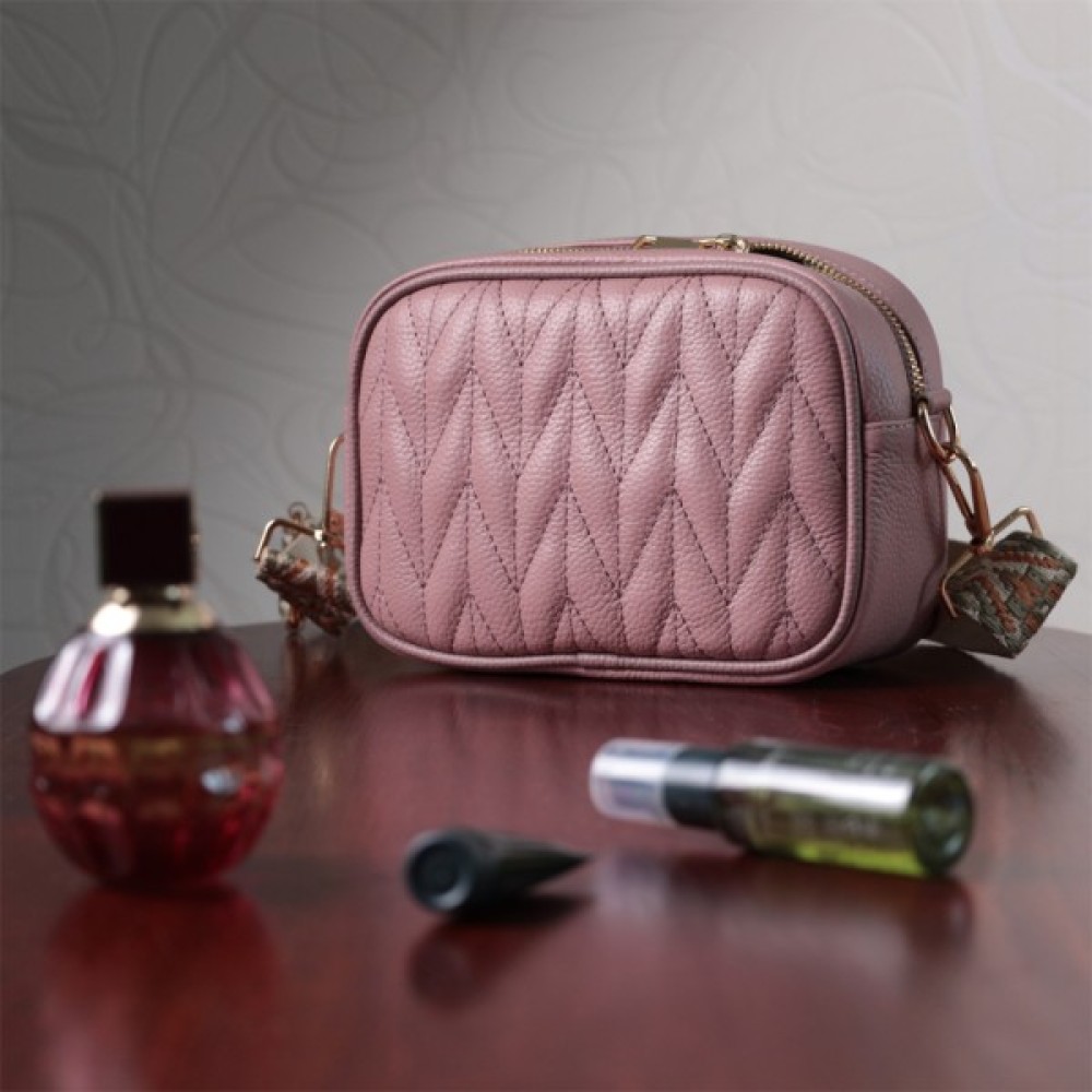 Стьобана жіноча з натуральної шкіри Рожева