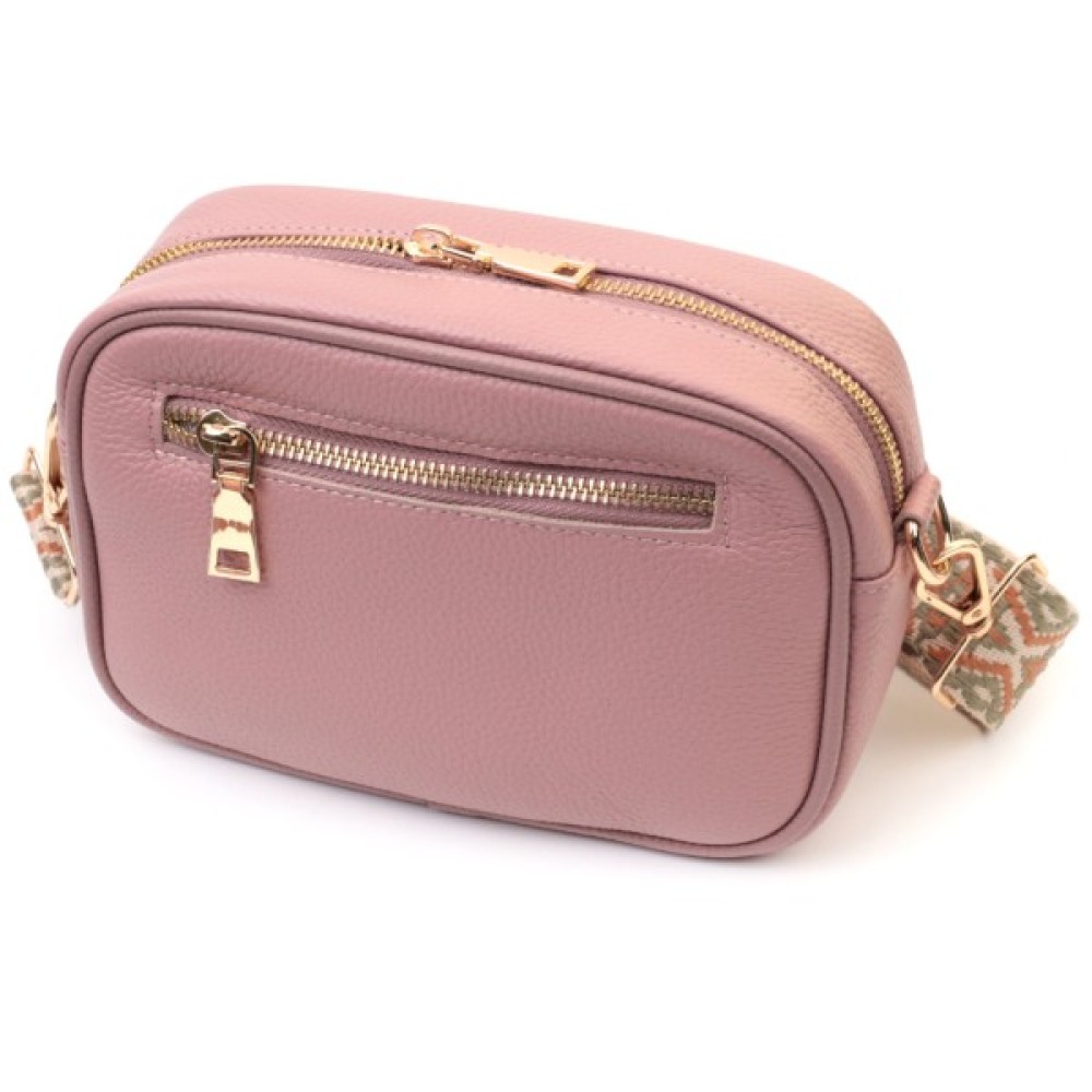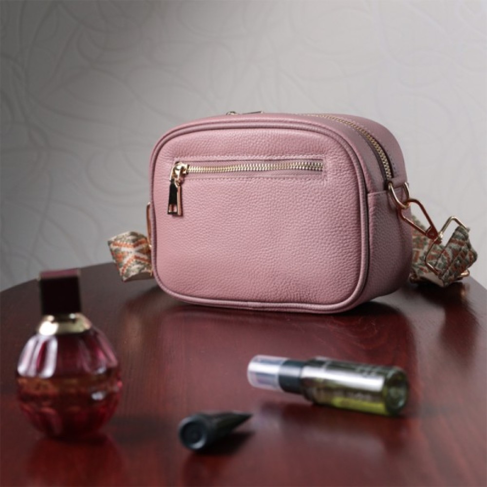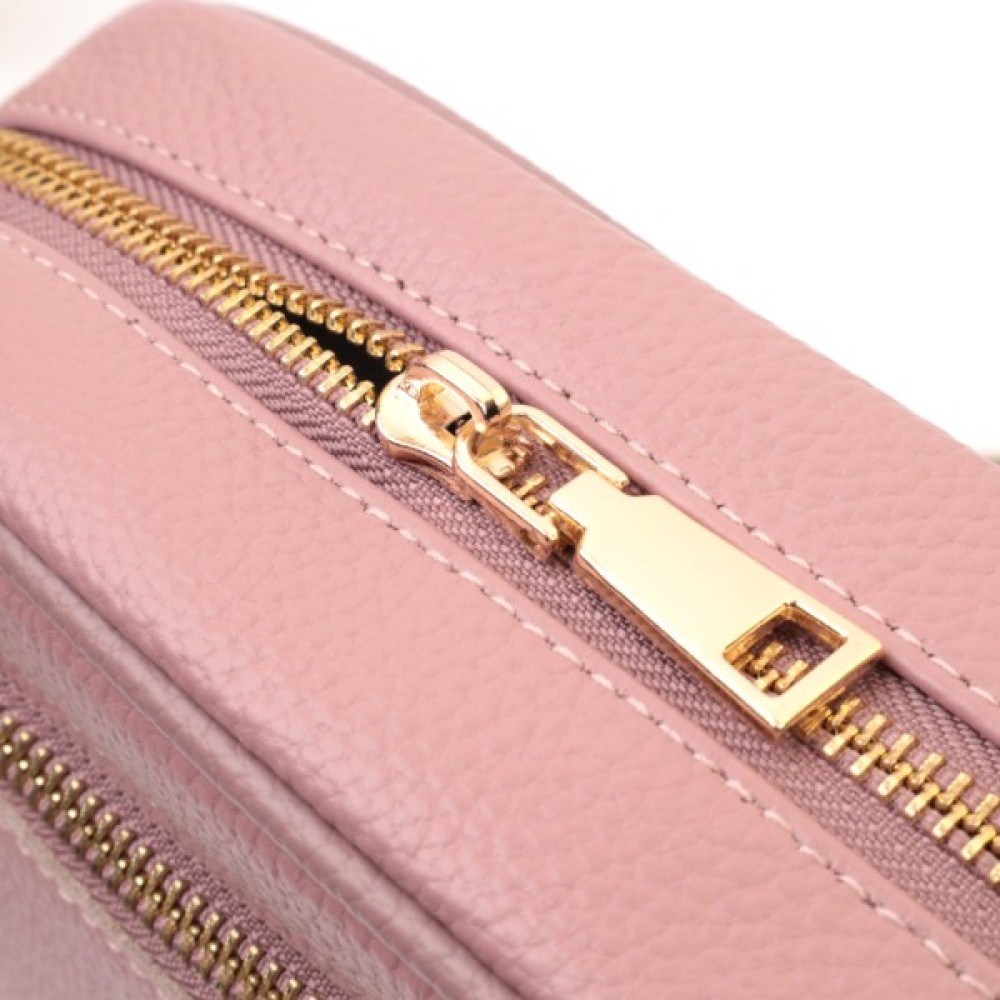 Чарівна сумка для жінок на всі випадки життя із натуральної якісної шкіри. Аксесуар складається з основного відділення, яке закривається на блискавку, кишені відкритого типу всередині, а також кишені на блискавці зовні на задній стороні. Носити сумку можна в руці, під рукою, на плечі і через плече, для цього є текстильний ремінь, що знімається. В аксесуарі використано якісну фурнітуру кольору золота.