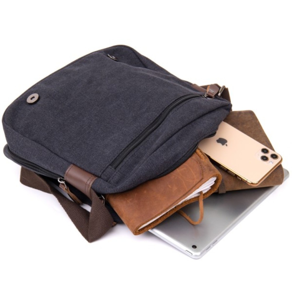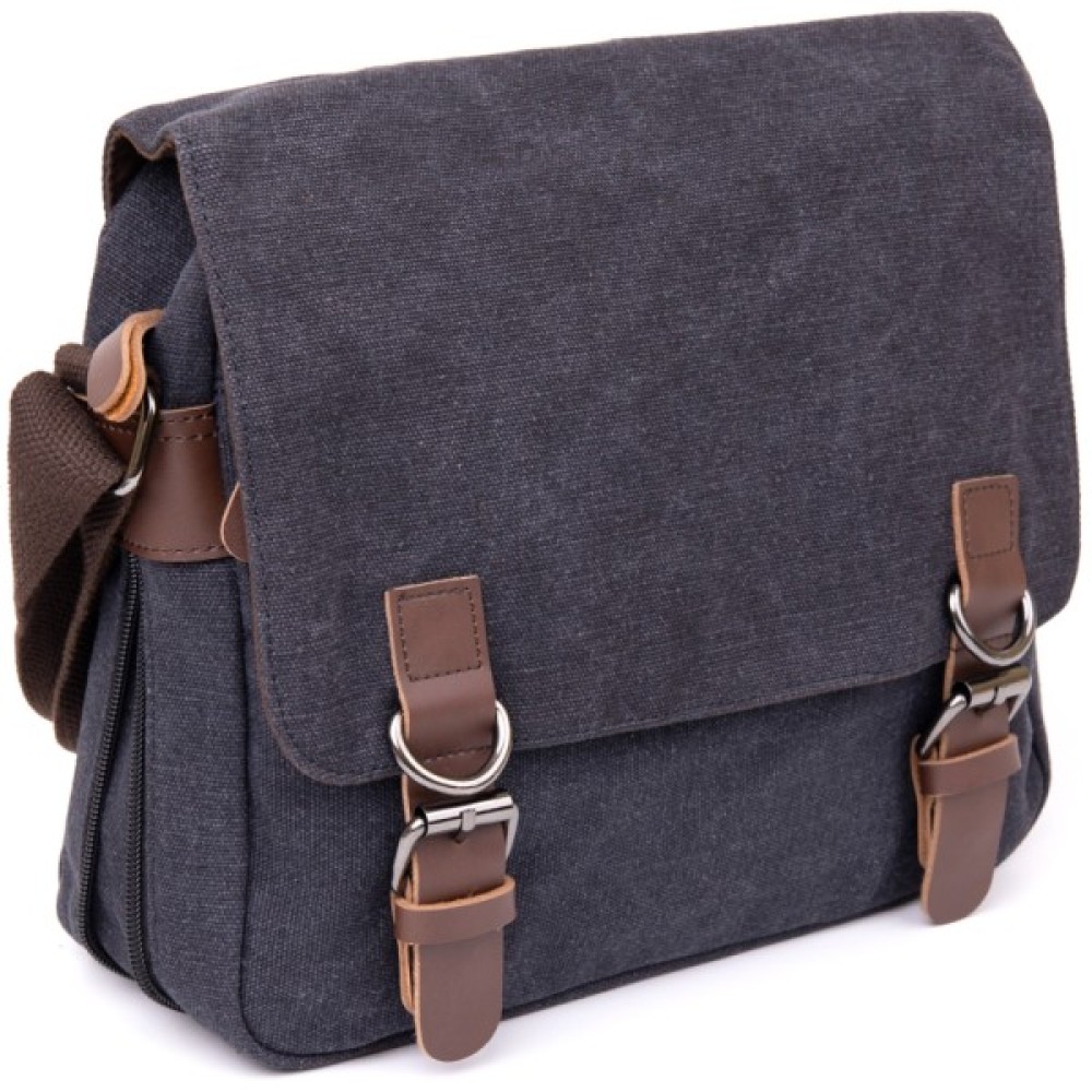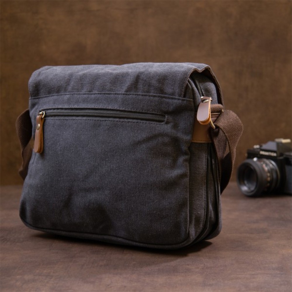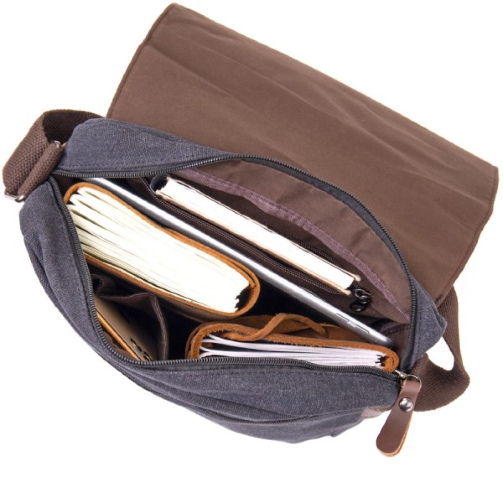 Невелика сумка-почтальонка в універсальному і практичному чорному кольорі.