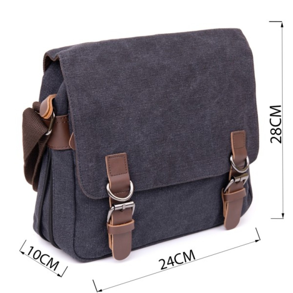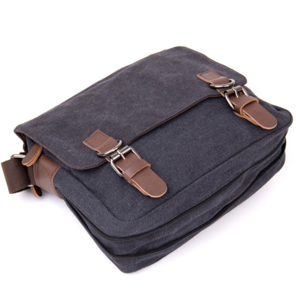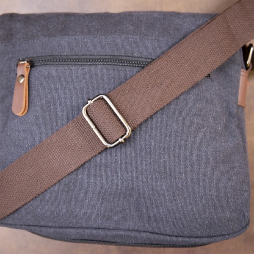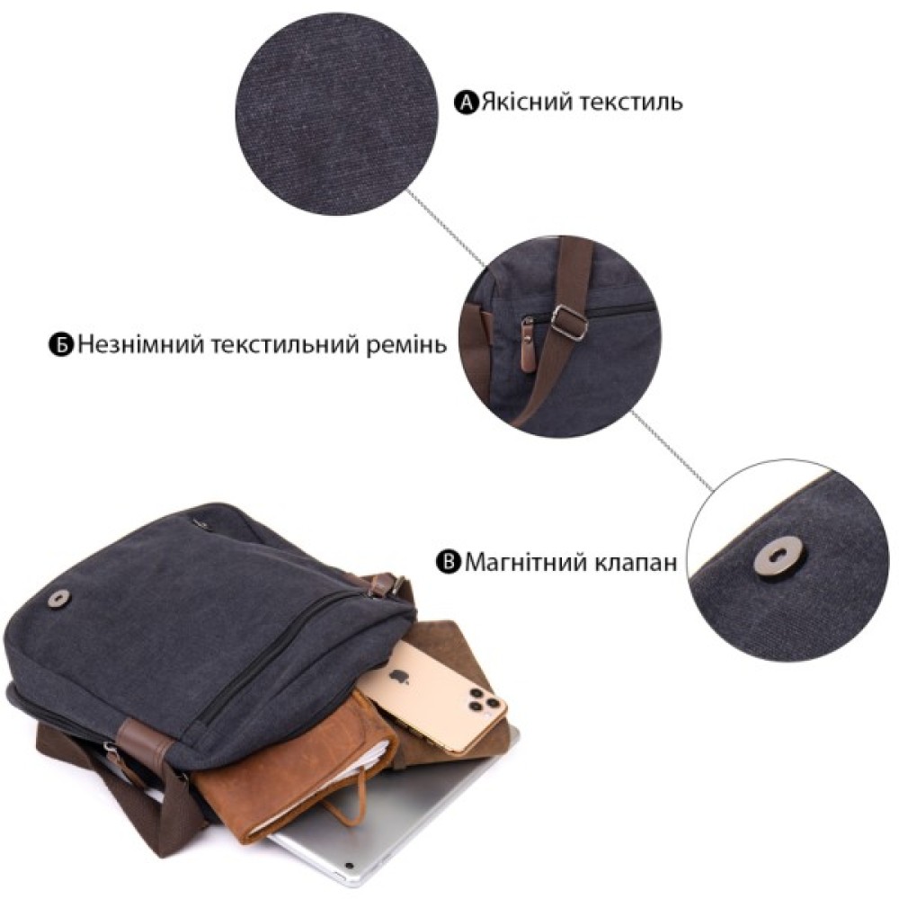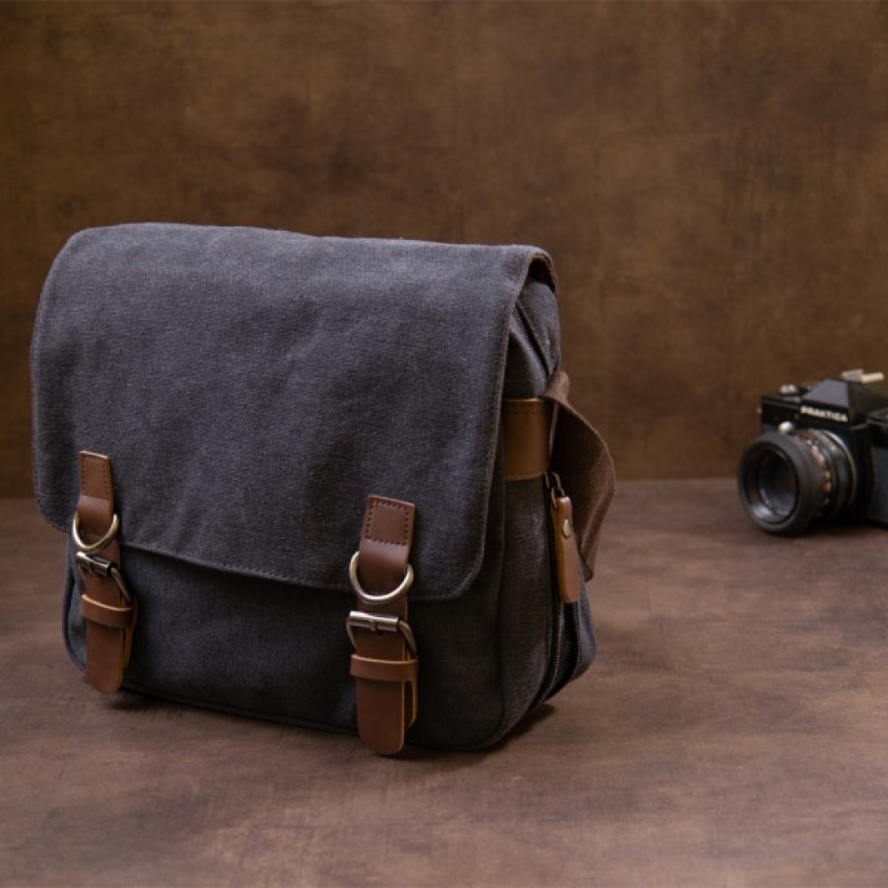 Невелика сумка-почтальонка в універсальному і практичному чорному кольорі.